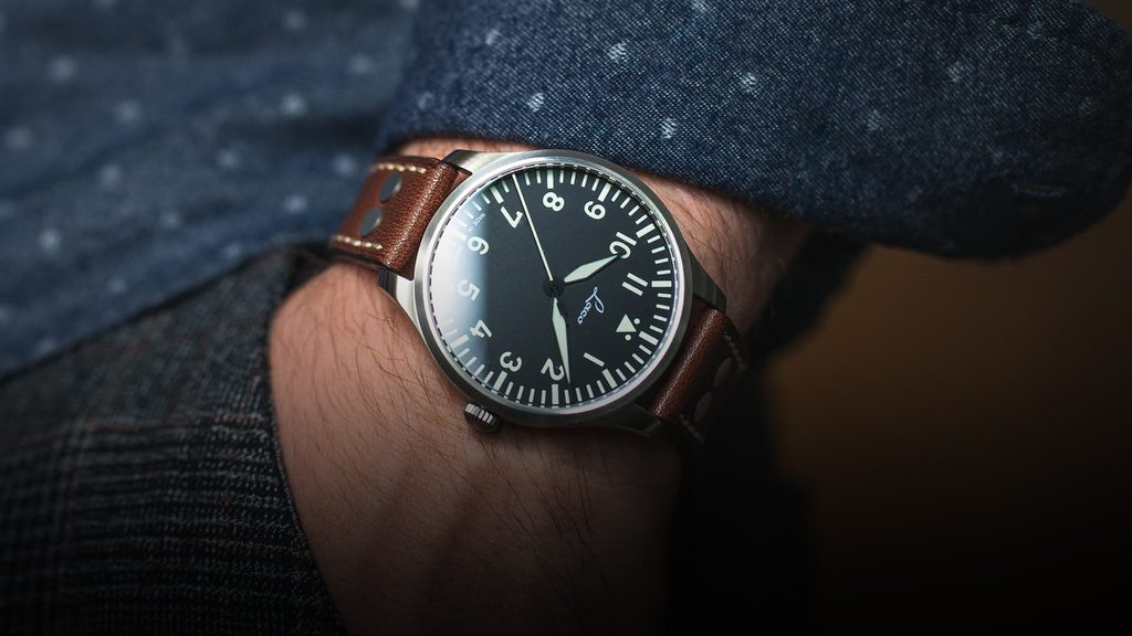 German Laco Genf.2 40 watches impress at first glance with their typical pilot design, which is characterized by cleanliness and great clarity, which makes them very popular not only among watch fans.