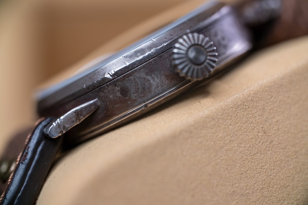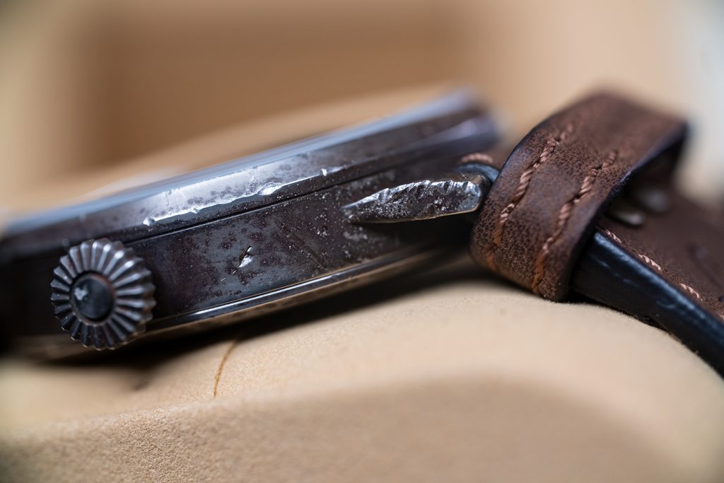 Laco uses a unique method to give the watches a historic look and create a natural patina. Grooves, scratches, signs of wear and patina all look authentic and the watch looks period. The treatment does not only affect the case, but also the dial, strap and hands, where even a piece of luminescence may be missing. All the parts are modified by hand, and the result of the demanding process is always a unique and original watch.