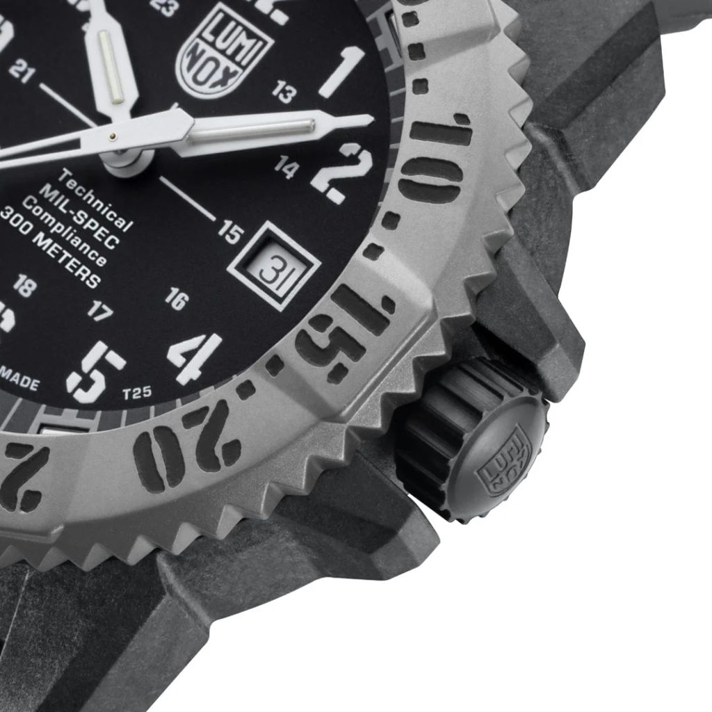 The Luminox MIL-SPEC 3350 Series XL.3351.2, watch, part of the Mil-Spec 3350 Series collection, refers to the standards of the United States Department of Defense. The watch therefore meets the demands of use in the most demanding environments. The watch meets the MIL-PRF-46374G standard. You can rely on high water resistance, which is an essential parameter for watches used for this purpose. It is water resistant up to 30 ATM, so it is possible to wear it even during deep diving. The unidirectional rotatable titanium lunette with tritium point also serves this purpose. Inside the case is the Swiss-made ETA F06.412 quartz movement with HeavyDrive and PreciDrive technology, which ensures accuracy and reliability even under extreme shocks or temperature changes.
