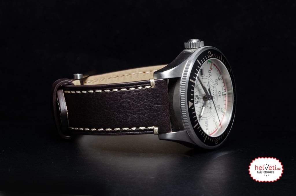 An interesting feature of this model is the depiction of the globe and the Lockheed XC-69 aircraft from Lockheed Martin on the dial, which gives the watch the hallmark of a pilot's watch. The aircraft can also be found on the caseback.