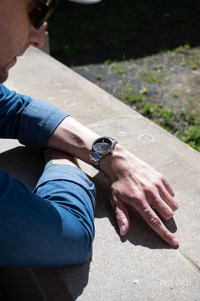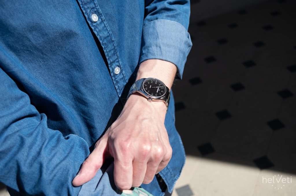 The 40 mm case of the watch is made of stainless steel, combining partly polished and partly brushed surfaces, which gives its body a particularly elegant and lively appearance.