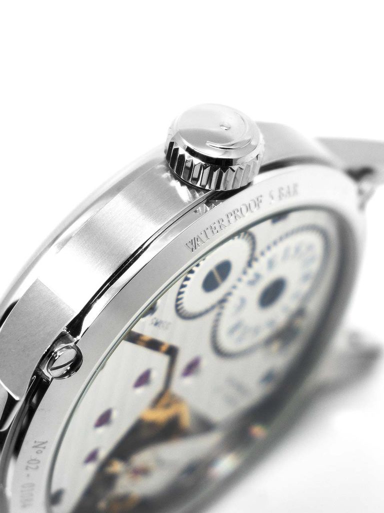 The case of the MeisterSinger N°02 AM6608N is made of stainless steel and inside it ticks a Swiss mechanical Unitas 6498-1 movement with 19 jewels and manual winding. This movement operates at a frequency of 18,000 semi-frequencies per hour and has a winding reserve of up to 46 hours. This beautifully decorated movement can be viewed through the watch's transparent case back. The dial, like the entire model, has a light retro touch and, of course, its excellent workmanship. Thanks to the typical minute scale, you can rely on perfect clarity even though the time is displayed with only one hand.