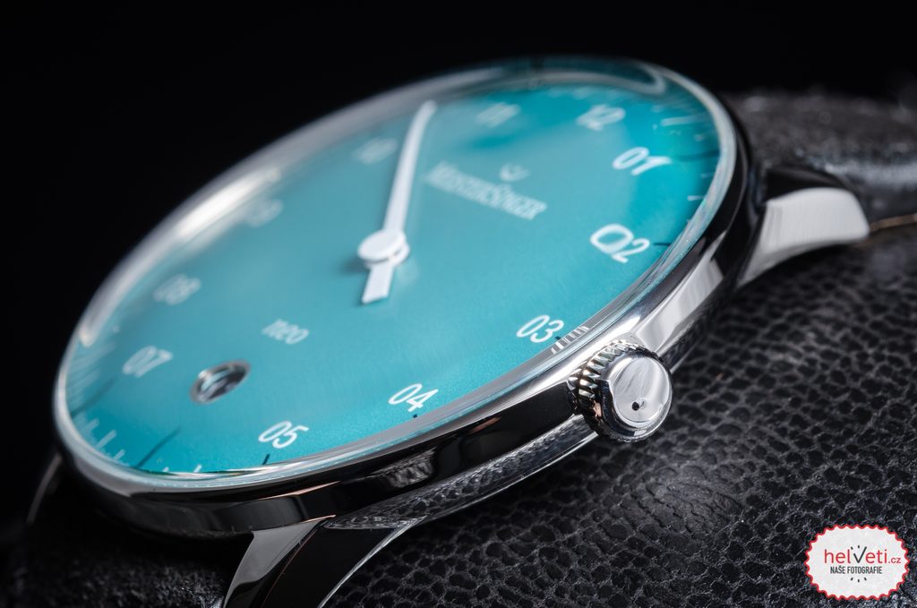 The case of the MeisterSinger Neo NE914 is made of stainless steel and inside it ticks the Swiss mechanical movement Sellita SW200-1 with automatic winding. At the 6 position, we then find an unobtrusive but practical date display. The movement also has a manual winding option. The dial, like the whole model, has a slight retro touch, with this particular model we find inspiration from the 1950s and of course its excellent workmanship. Thanks to the typical minute scale, you can count on perfect clarity even though the time is displayed with only one hand.