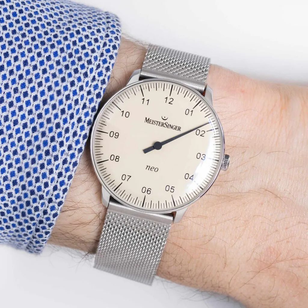 Thanks to the 36 mm case diameter, the watch fits perfectly on most men's wrists, but also women's. Thanks to its parameters, the MeisterSinger Neo NES903 can be a great addition to a collection or an excellent non-traditional everyday watch.