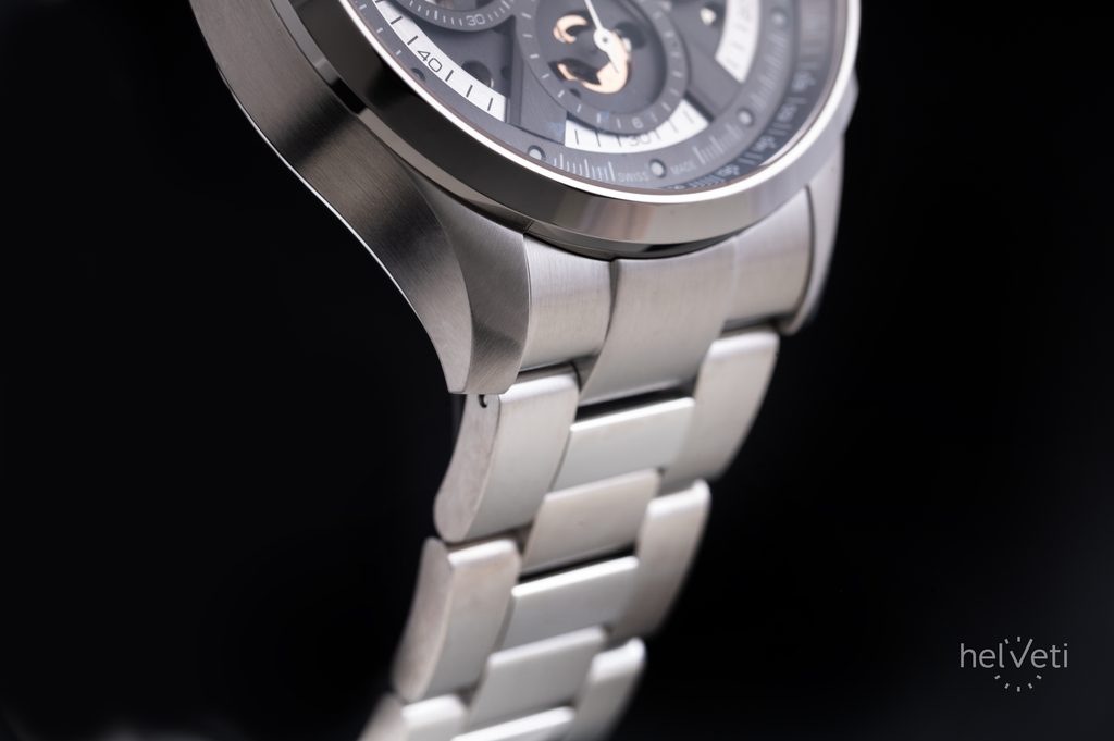 The skeletonized dial is protected by a sapphire crystal, which guarantees maximum scratch resistance. The double-sided anti-reflective coating then delivers perfect legibility even in bright sunlight. The water resistance of this model is 100m (10 Bar), so it can handle contact with water such as swimming. The water resistance is supported by a screw-in crown.