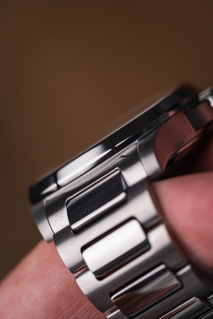 The transparent dial is protected by a sapphire crystal, which guarantees maximum scratch resistance. The double-sided anti-reflective coating provides perfect legibility even in bright sunlight. The water resistance of this model is 100m (10 Bar), so it can handle even greater contact with water, such as swimming. The water resistance is supported by a screw-in crown.