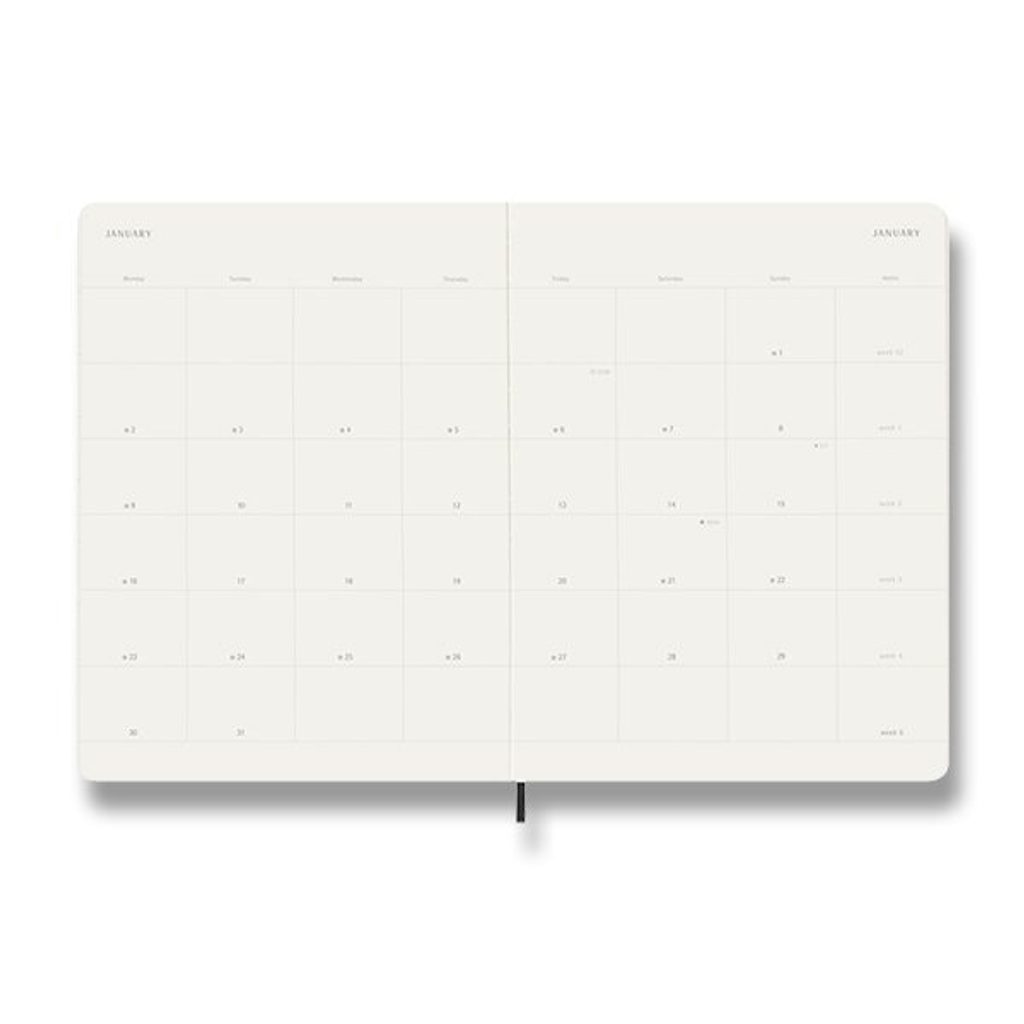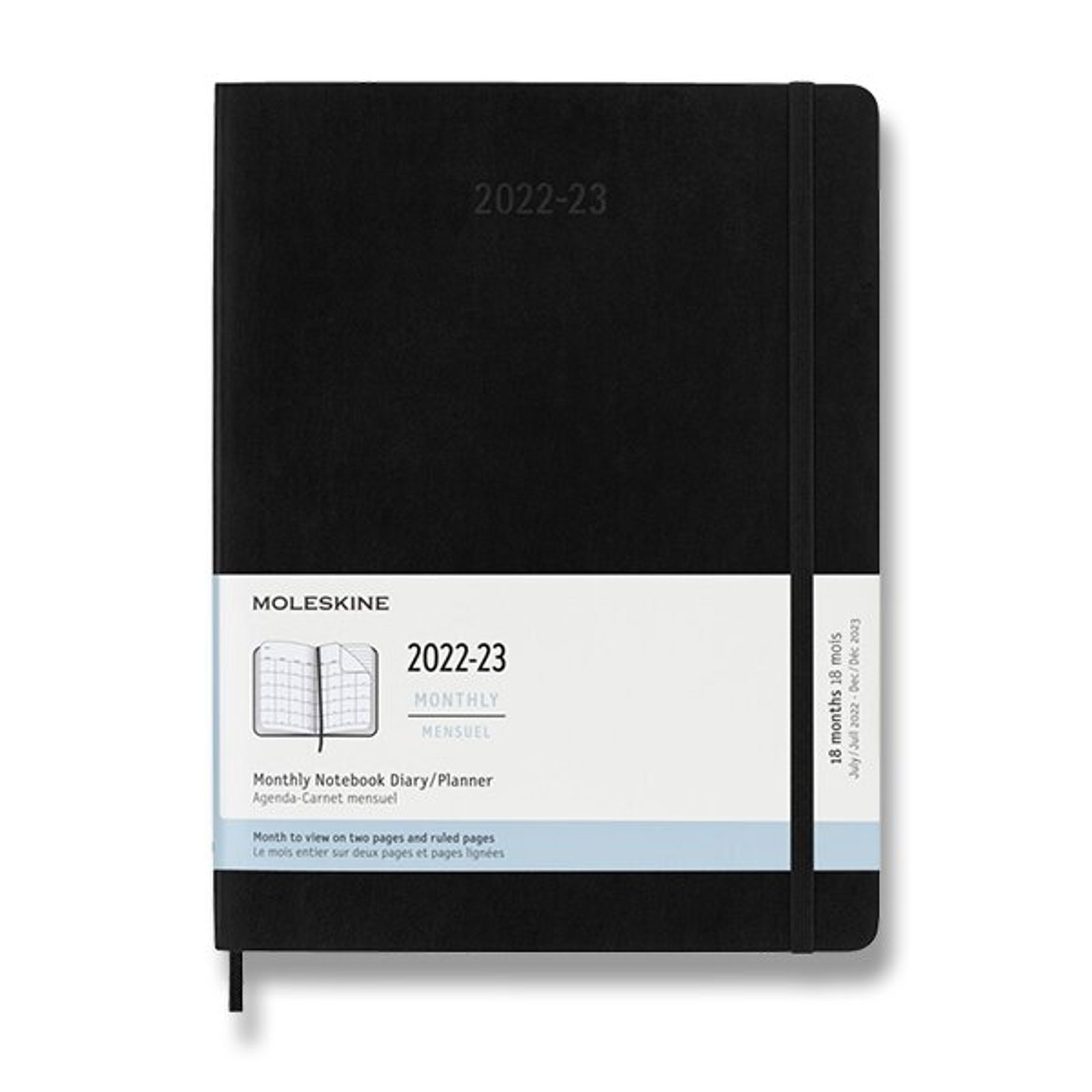 A modern, extra-large 18-month Moleskine planner you'll appreciate for its practicality and timeless design. The diary calendar runs from July 2022 to the end of 2023. Each month is shown on two pages, followed by two lined pages.