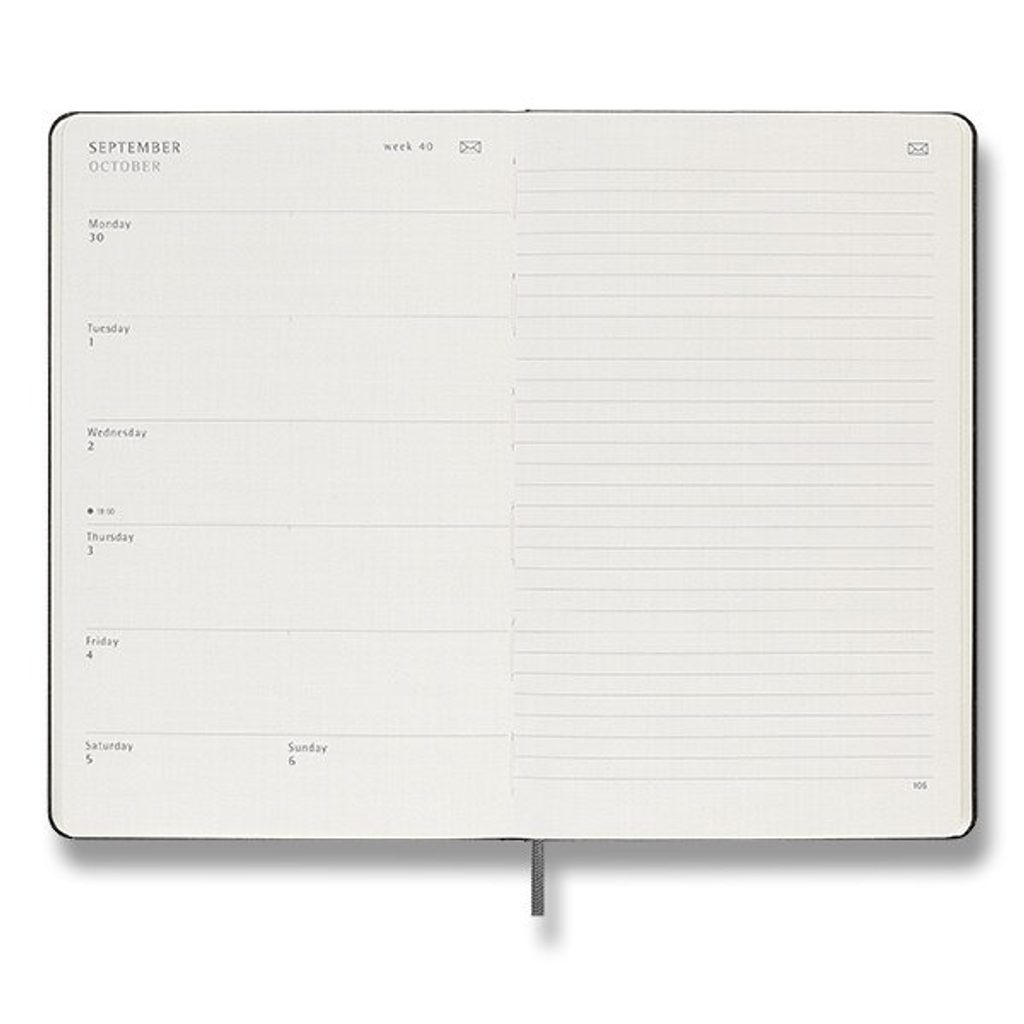 A professional Moleskine weekly diary for easy planning of work and private duties.