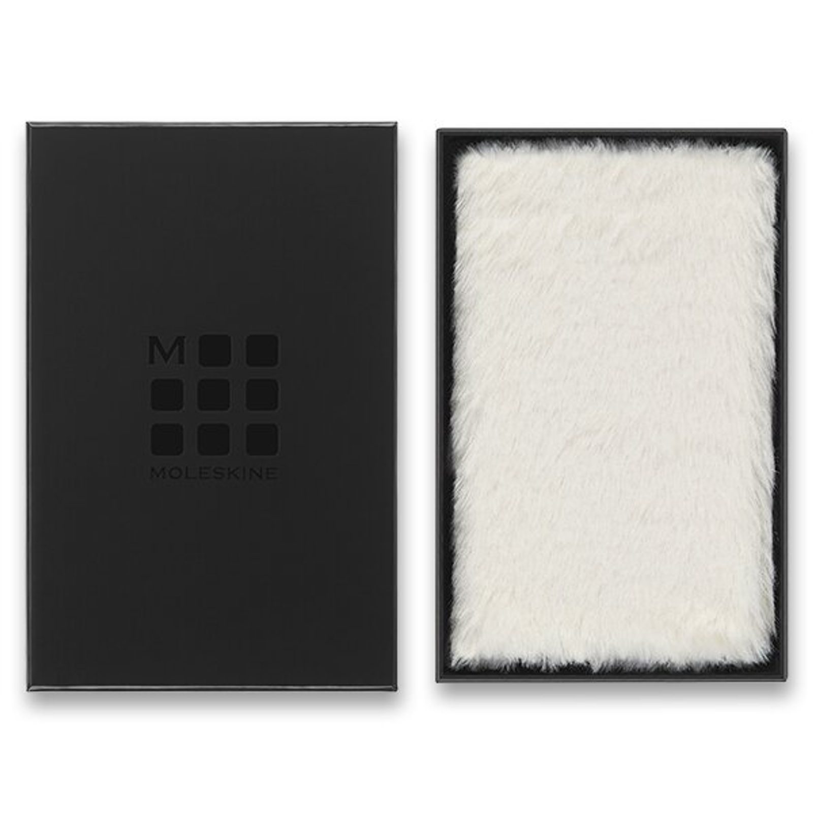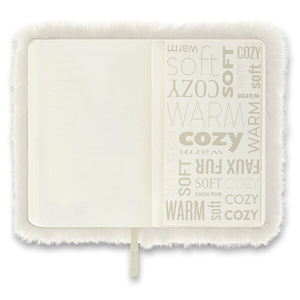 The notebook has a sturdy, spine-sewn binding in cardboard covers covered with faux fur. The irresistibly fluffy and soft surface of the notebook literally beckons you to let your thoughts and inspiration flow freely. In short, it's the perfect note-taking companion and also makes an imaginative gift. The notebook is surrounded by an elastic band to prevent it from opening by itself and there is also a fabric bookmark, a leaflet with the history of MOLESKINE and a practical pocket for business cards and documents. The paper weight is 100 g/m² and contains no acids.
