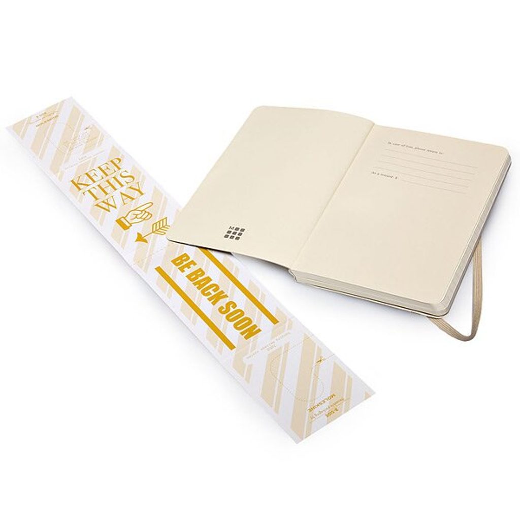 A modern and practical Moleskine notebook you'll appreciate for its practicality and timeless design. The notebook has a sewn binding in cardboard boards at the spine and is wrapped with elastic tape to prevent spontaneous opening. There is also a fabric bookmark, a leaflet with the history of MOLESKINE and a handy note binder. The paper weight is 70 g/m² and contains no acids.