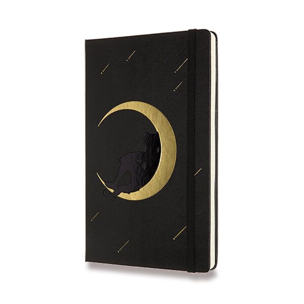 A modern and practical Moleskine notebook you will appreciate especially for its uniqueness. The notebook has a sturdy spine sewn in cardboard covers and is encased in an elastic band to prevent spontaneous opening. There is also a handy pocket for business cards and small items, which is made of fabric and cardboard, a fabric bookmark, a sheet of thematic stickers and a leaflet with the history of MOLESKINE. The paper weight is 70 gsm and contains no acids.