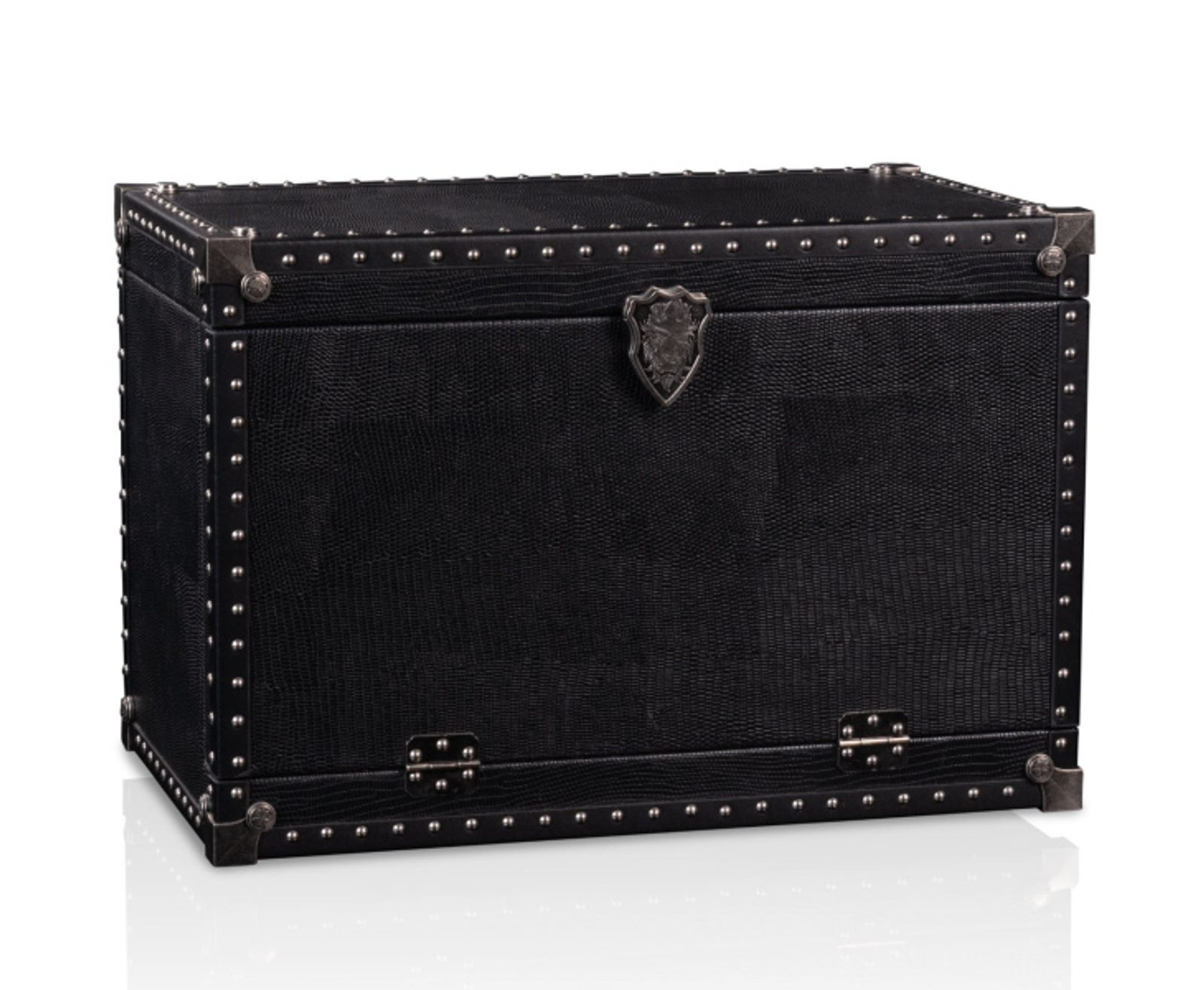 Winding machine Heisse & Söhne Verne 3 70019-233.142 for 3 pieces of mechanical watches with automatic winding. Inspired by Victorian style and steampunk design, the Verne range combines a luxurious aesthetic with advanced technology. Solid case, coated with vegan imitation leather and hand-embellished rivets. Additional jewelry and valuables can be stylishly stored in the top shelf.