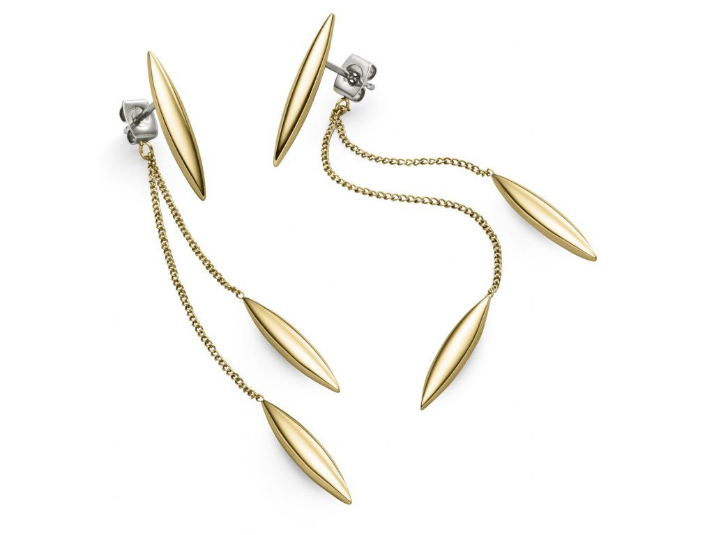 Imaginative and extravagant ladies dangle earrings from the Boccia Titanium collection are certainly not lacking. Although the basis of their design is a chain with a drop at the end, don't expect any boredom. The result is a truly distinctive piece. Their charm is perfectly enhanced by the glossy finish. The earrings are made of titanium and are gold plated. Titanium is lightweight, strong and also hypoallergenic. Therefore, it is also suitable for people with increased sensitivity to metals.