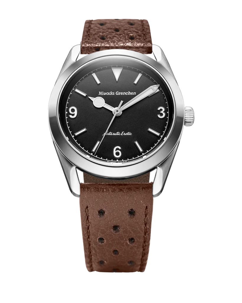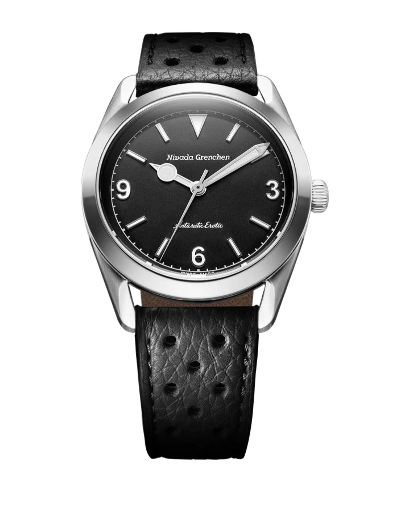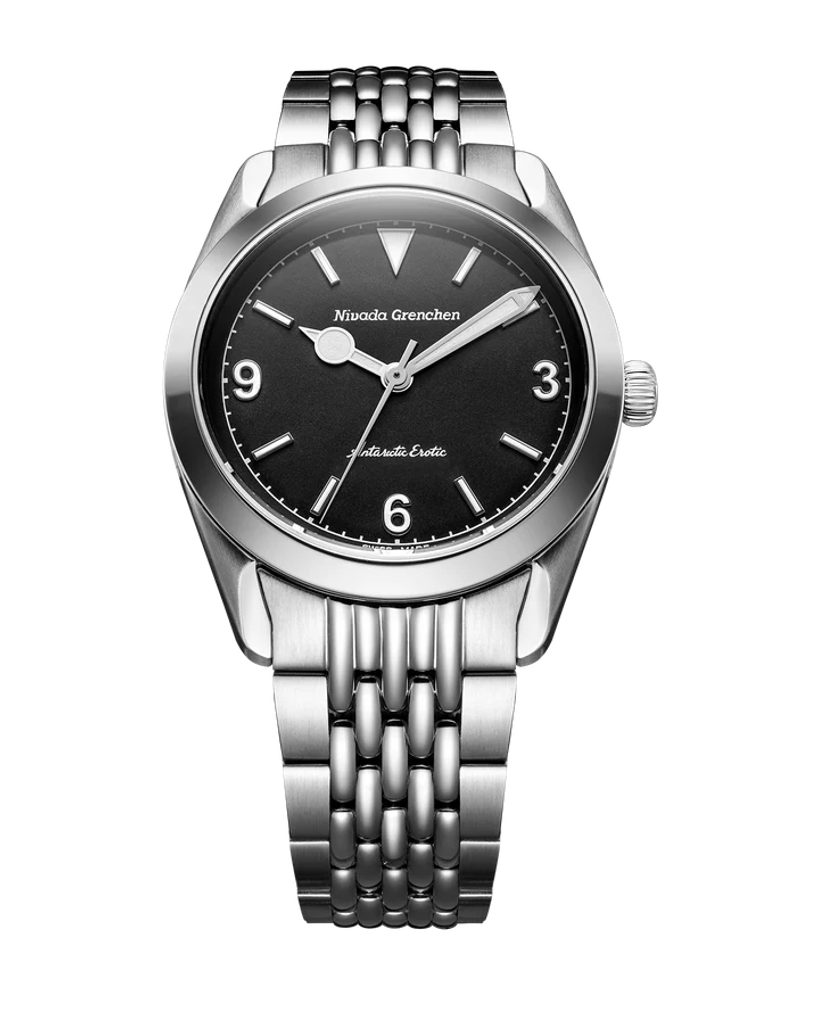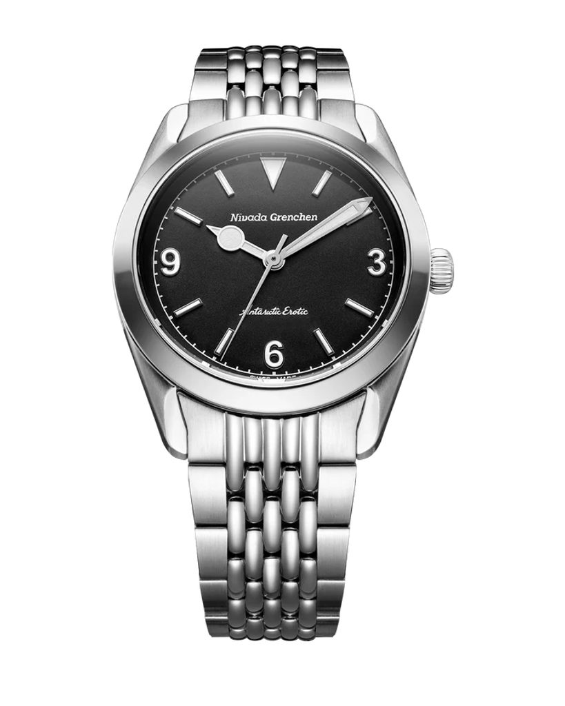 Built on the iconic Antarctic platform introduced in the 1950s, the Antarctic Erotic reinterprets one of Nivada Grenchen 's most distinctive designs through a bold yet subtle evolution. At its core, it remains a true everyday watch: the perfectly balanced 38 mm stainless steel case combines polished and brushed surfaces and is complemented by a timeless dial design inspired by vintage Antarctic models.