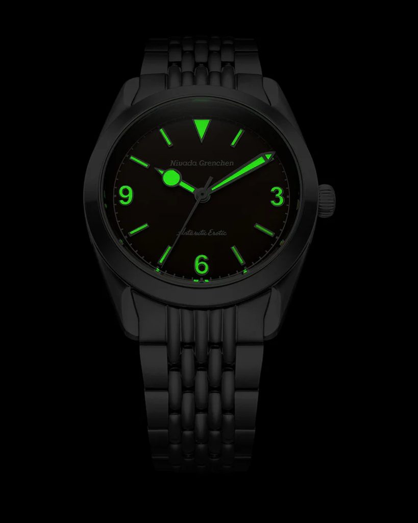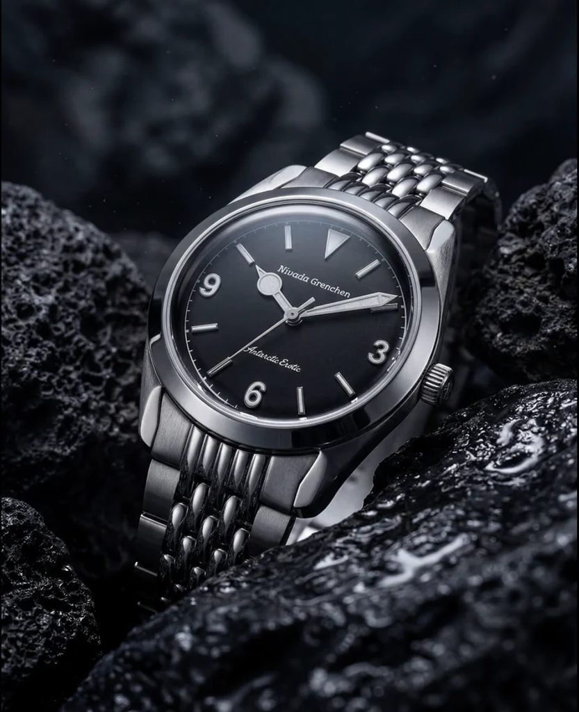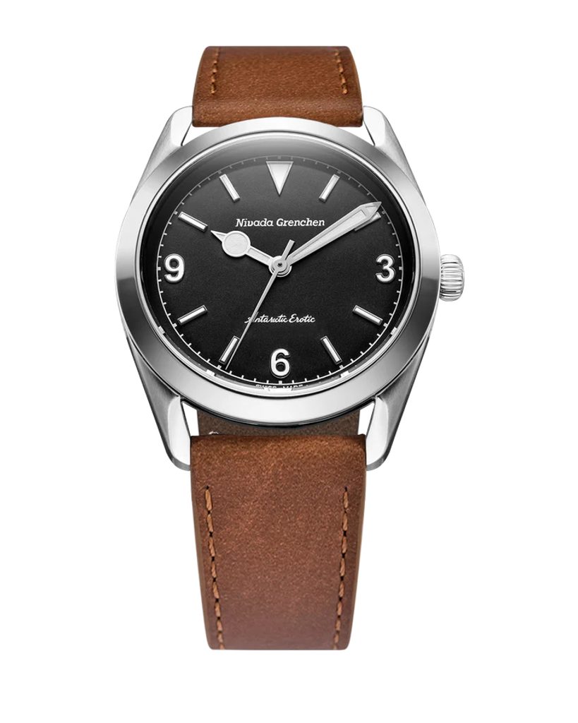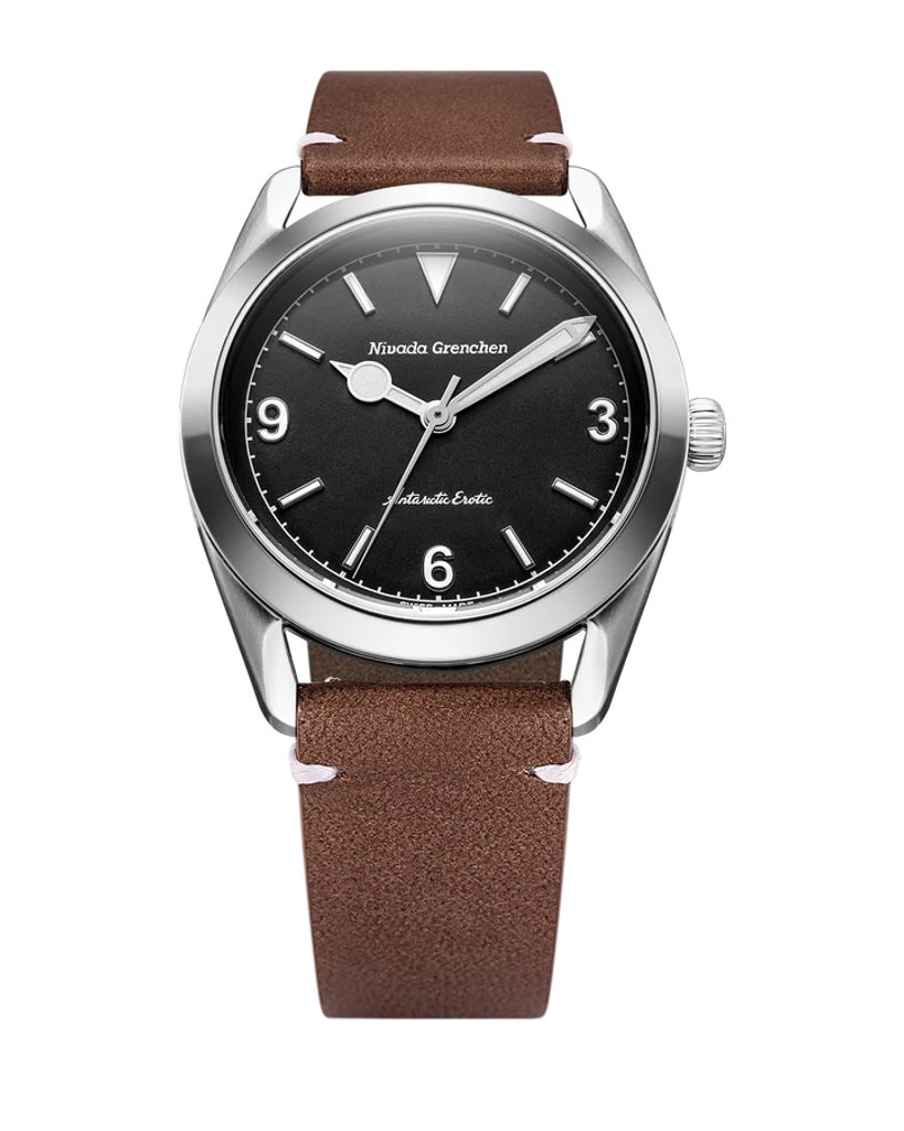Built on the iconic Antarctic platform introduced in the 1950s, the Antarctic Erotic reinterprets one of Nivada Grenchen 's most distinctive designs through a bold yet subtle evolution. At its core, it remains a true everyday watch: the perfectly balanced 38 mm stainless steel case combines polished and brushed surfaces and is complemented by a timeless dial design inspired by vintage Antarctic models.
