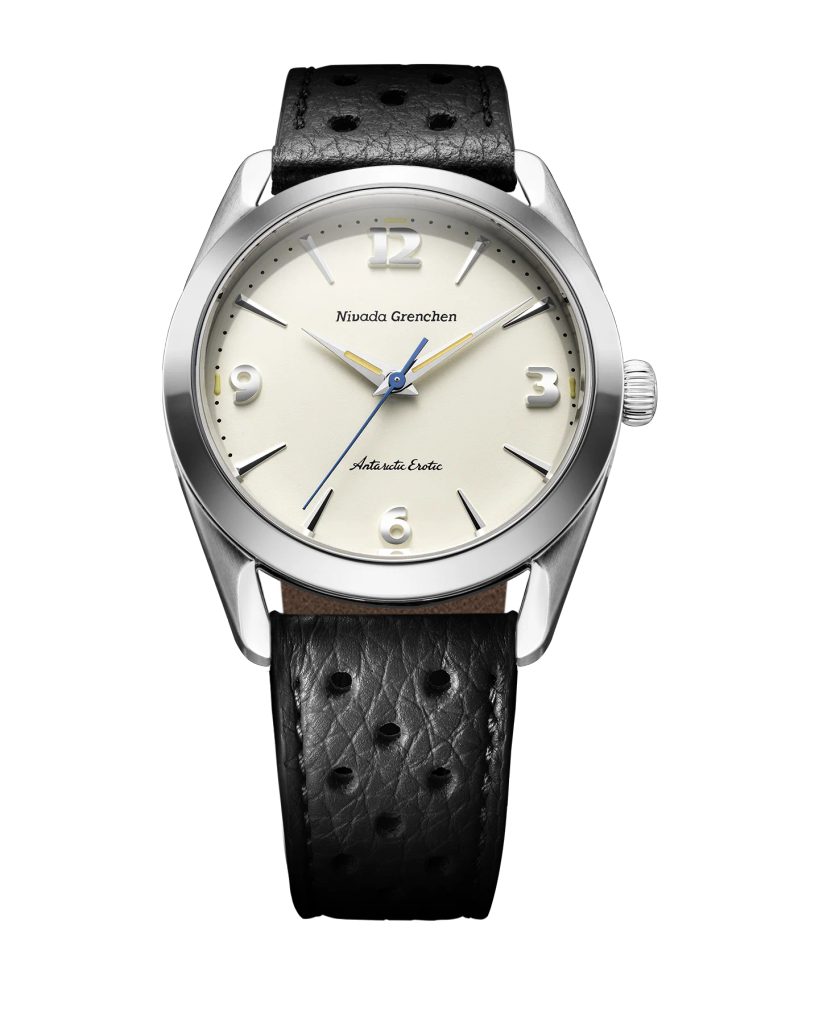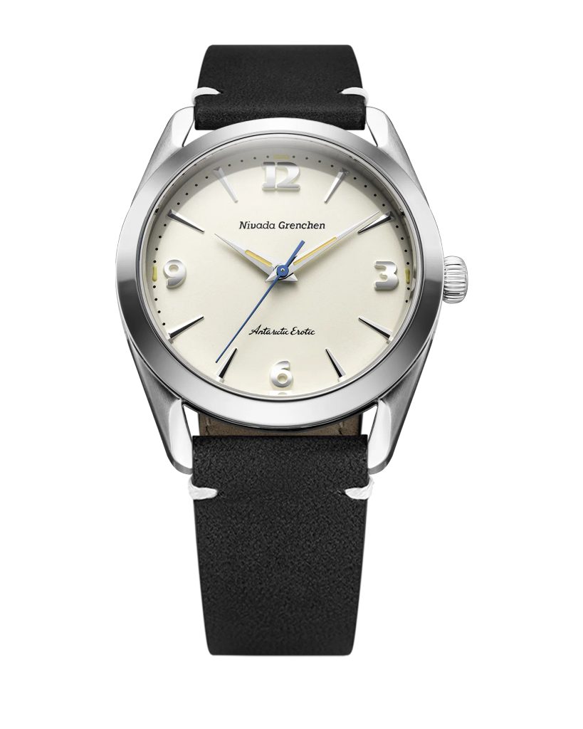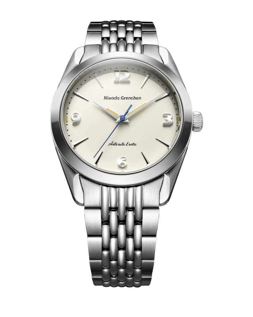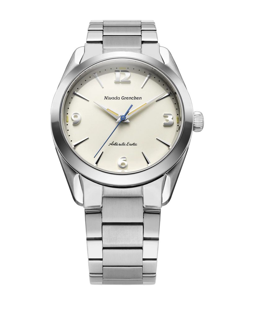 Built on the iconic Antarctic platform introduced in the 1950s, the Antarctic Erotic reinterprets one of Nivada Grenchen 's most distinctive designs through a bold yet subtle evolution. At its core, it remains a true everyday watch: the perfectly balanced 38 mm stainless steel case combines polished and brushed surfaces and is complemented by a timeless dial design inspired by vintage Antarctic models.