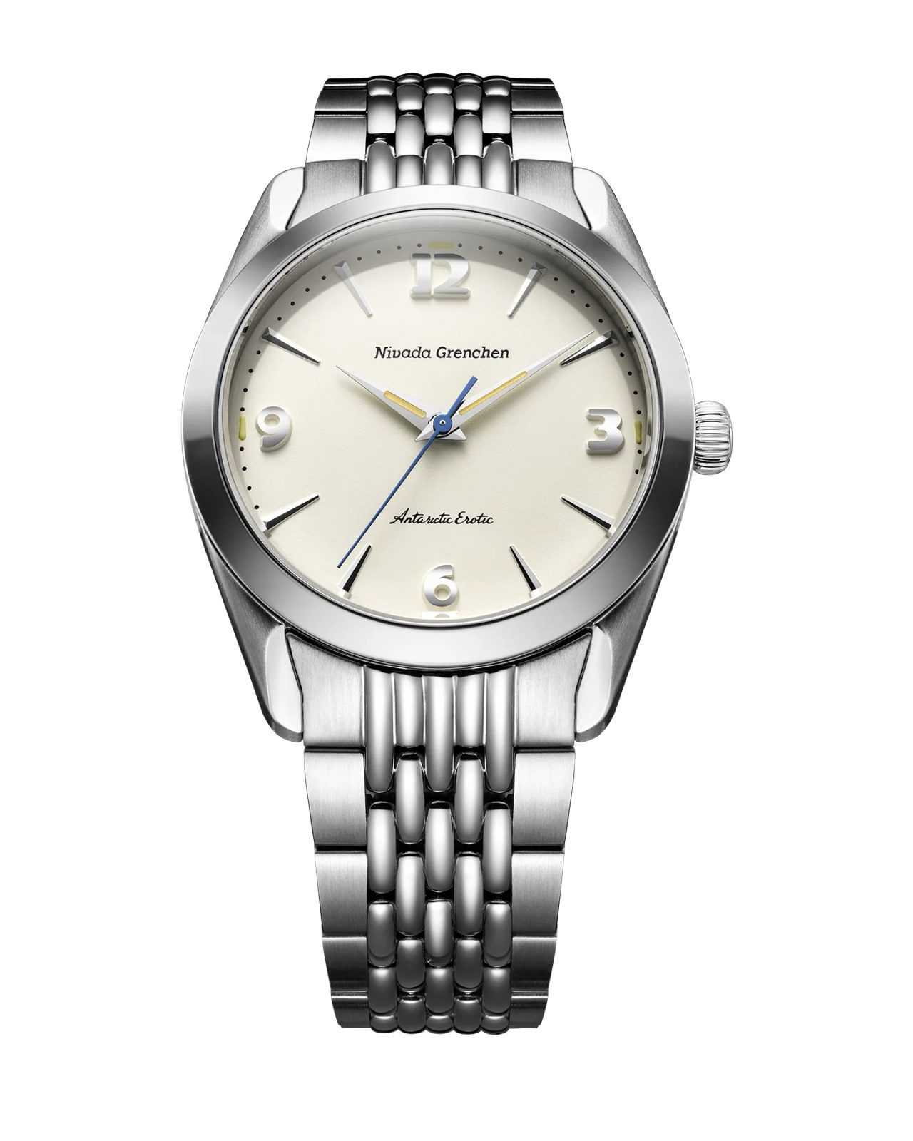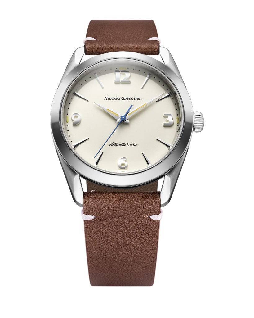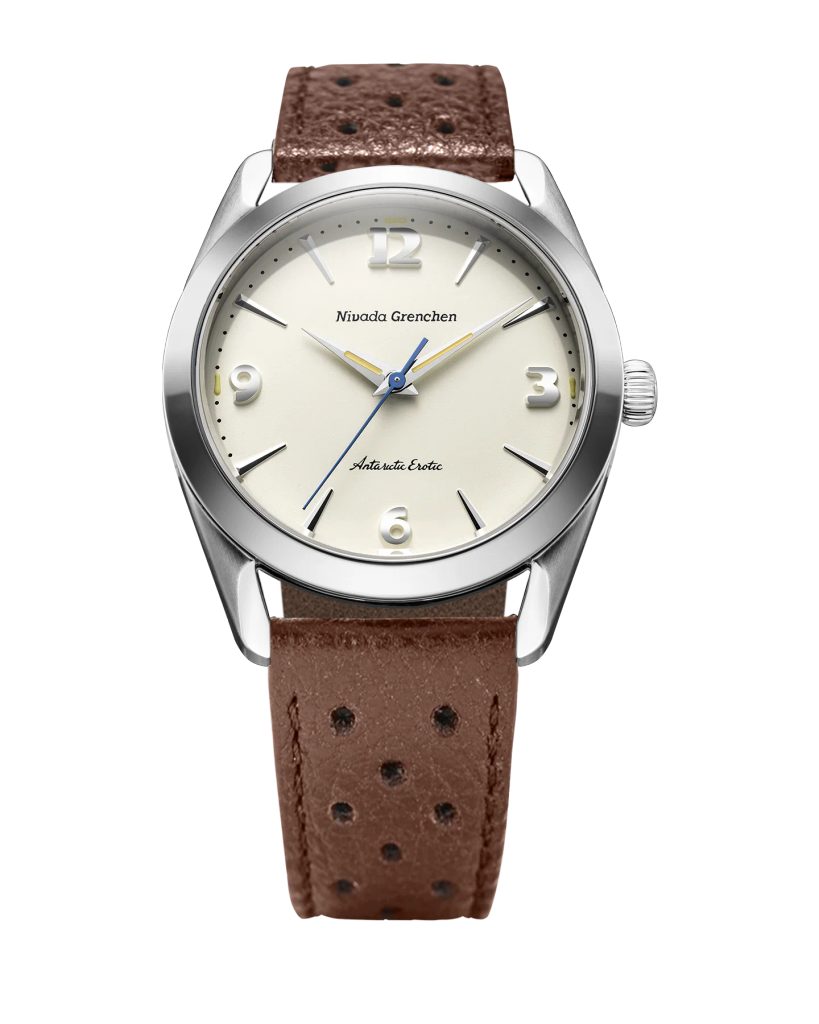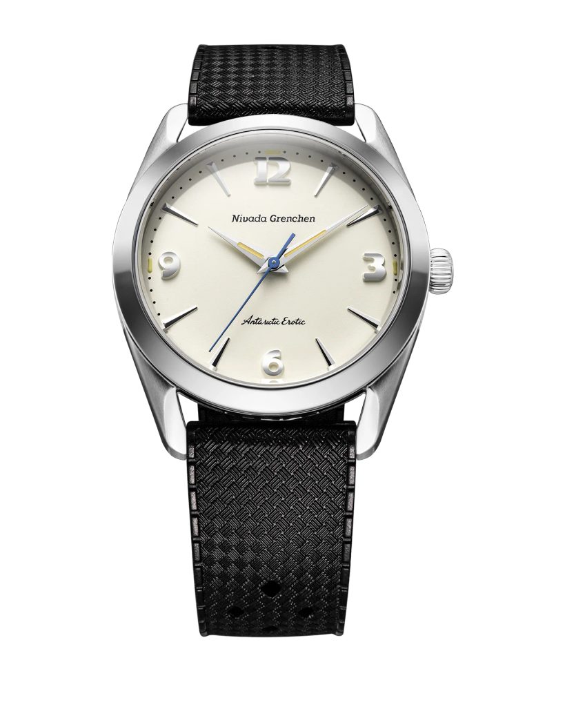 Built on the iconic Antarctic platform introduced in the 1950s, the Antarctic Erotic reinterprets one of Nivada Grenchen 's most distinctive designs through a bold yet subtle evolution. At its core, it remains a true everyday watch: the perfectly balanced 38 mm stainless steel case combines polished and brushed surfaces and is complemented by a timeless dial design inspired by vintage Antarctic models.