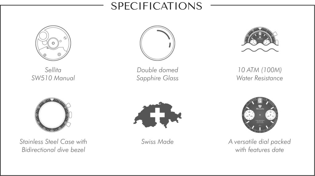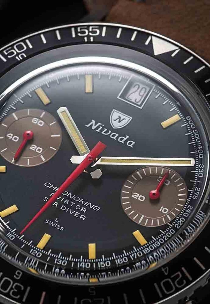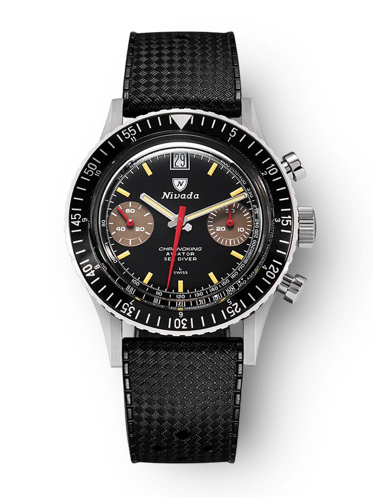 Nivada Grenchen, založená ve městě Grenchen ve Švýcarsku v roce 1926, je značka, která byla známá svými hodinářskými inovacemi v 50. a 60. letech s jejich legendárními kolekcemi Antarctic & Chronomaster Aviator Sea Diver. Dnes, téměř o století později, restartovali Nivadu Grenchen s cílem přivést zpět k životu dědictví a designy, které tehdy Nivadu vytvářely.