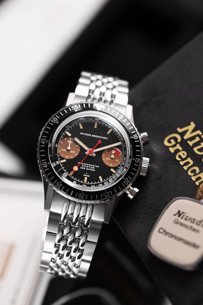 Nivada Grenchen, založená ve městě Grenchen ve Švýcarsku v roce 1926, je značka, která byla známá svými hodinářskými inovacemi v 50. a 60. letech s jejich legendárními kolekcemi Antarctic & Chronomaster Aviator Sea Diver. Dnes, téměř o století později, restartovali Nivadu Grenchen s cílem přivést zpět k životu dědictví a designy, které tehdy Nivadu vytvářely.