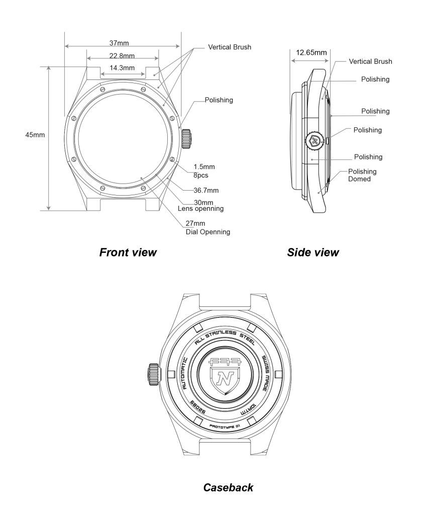 The 37 mm diameter, 12 mm thick 316 stainless steel case is treated to a polished and satin-brushed finish. Inside the model, the automatic movement SOPROD P024 operates with a power reserve of 38 hours. The entire watch is then protected by a high-quality double sapphire crystal, which guarantees maximum protection against scratches.