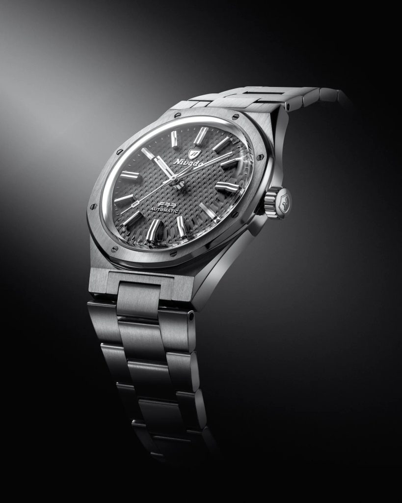 Nivada Grenchen is starting nothing less than a democratic revolution. While "sporty-chic" steel watches with integrated bracelets are either only on the waiting list or breaking price records at auction, the F77 is a reissue of a 1977 Swiss classic that is uncompromising in design and build quality!
