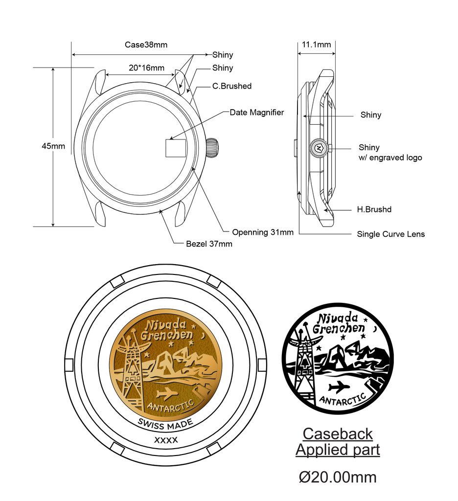 The Super Antarctic has a medium-sized case with a diameter of 38 mm and a thickness of 12 mm, made of 316 stainless steel with a polished and brushed finish. Inside the watch works an automatic movement SOPROD P024. The model has a water resistance of 10 ATM.