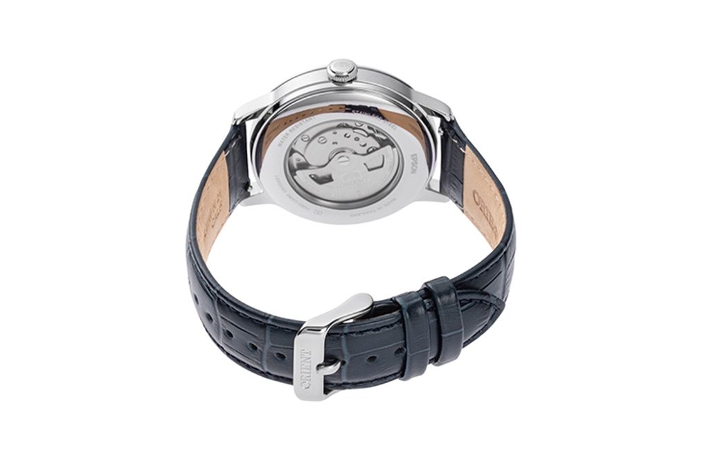 The case of the Orient RA-AK0806L30B watch is made of stainless steel and inside it we find the Orient F6B24 mechanical movement with automatic winding and a power reserve of 40 hours. This movement also features a stopping second hand when setting the watch (hacking) and a manual winding option. A transparent caseback allows you to monitor the movement, which operates at a frequency of 21,600 half-beats/hour.