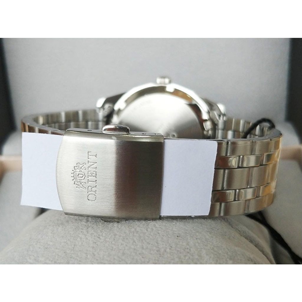 The Orient RA-AB0025S19B model is powered by a mechanical self-winding movement from the Orient workshop with a power reserve of 40 hours. The white dial is protected by a mineral crystal. The steel case combined with a steel bracelet adds to the watch's versatility and practicality. In terms of functions, the watch offers a day and date display at the 3 o'clock position. The advantage of the watch is the great clarity given by the use of distinctive indices and hands. The hands and indices are also coated with a layer of luminescence for easier readability in difficult lighting conditions. The water resistance of this model is 50m, the watch can withstand contact with water during hand washing, rain and can even handle a shower. The diameter of the case is 39 mm.