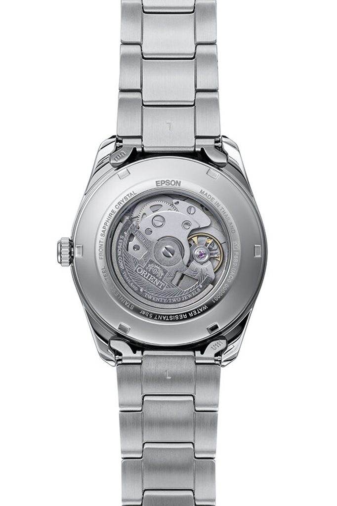 The Orient Stretto models are based on the design of the popular Semi Skeleton model while taking inspiration from the urban landscape. The wedge-shaped indices are reminiscent of high-rise buildings, while the circular depression below the indices represents the curves often found in modern architecture. The brushed surface of the case and bracelet is suitably interrupted by polished elements that accentuate the lines of the watch.