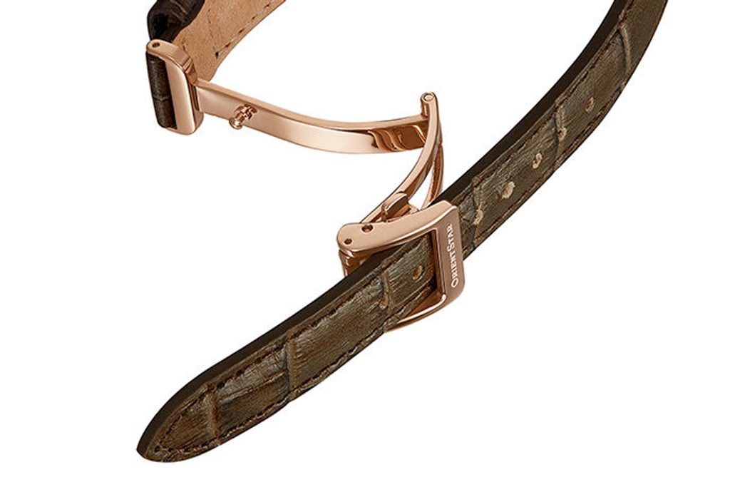 The case of the Orient Star RE-ND0003S00B is made of stainless steel with a rose gold PVD finish and inside it we find a mechanical movement of Orient's own manufacture 55C40. This self-winding movement offers a power reserve of around 40 hours. Of course, there is a function to stop the second hand when setting the time (hacking). Many will be pleased to see the movement's flywheel at the 9 o'clock position, the so-called "open heart". The movement, operating at a frequency of 21,600 half-beats/hour, can be observed thanks to the transparent dial.