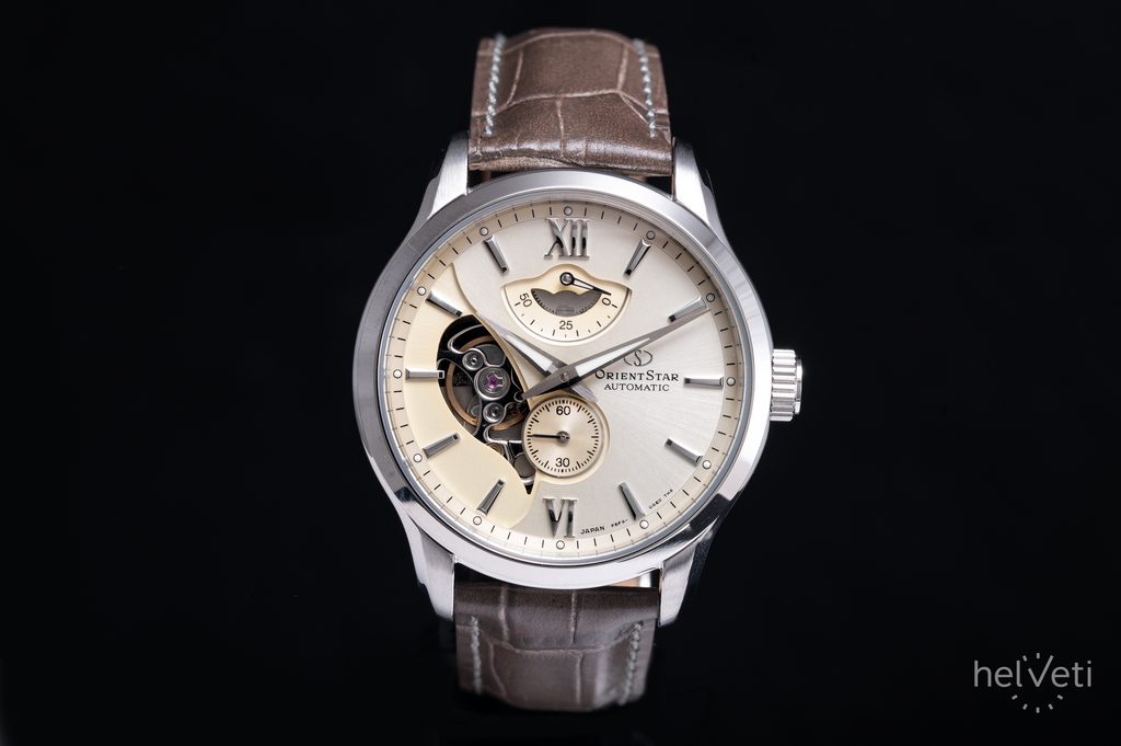 The Orient Star Contemporary Layered Skeleton RE-AV0B10G watch extends the Layered Skeleton Contemporary series. The model offers a clean and elegant design that makes it a suitable accessory for a shirt or jacket. However, you will also appreciate the watch's features during everyday wear.