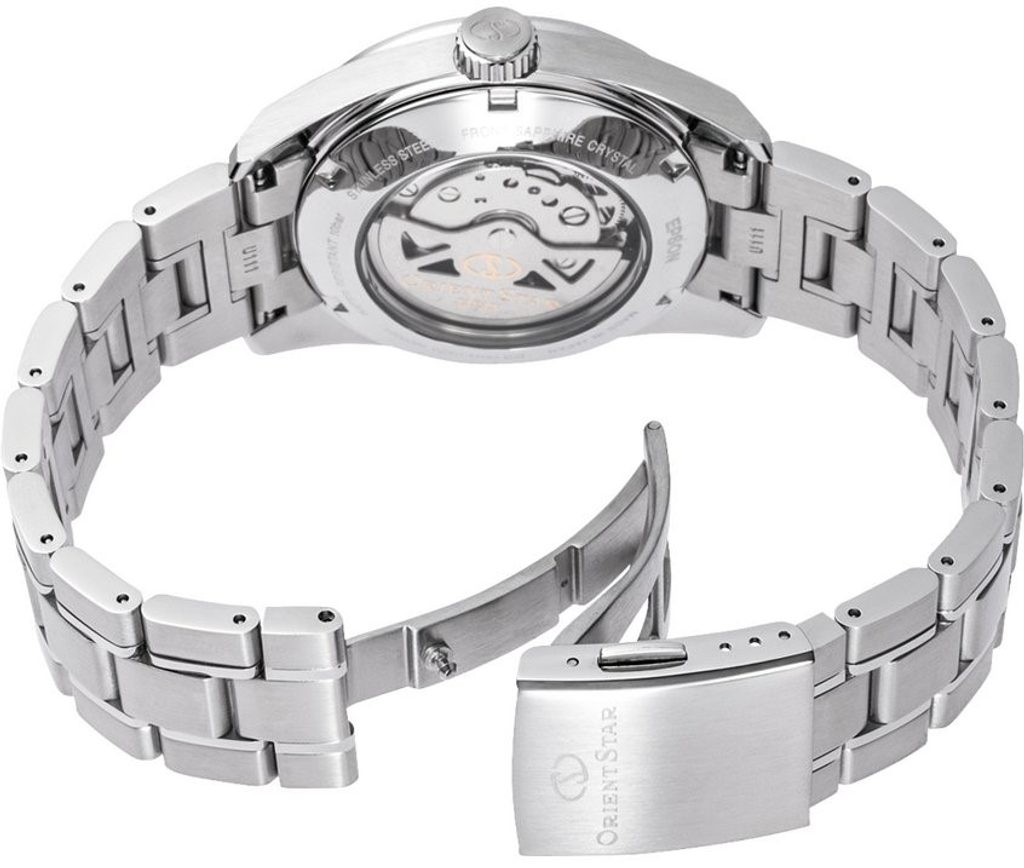 The case of the OrientRE-AU0109L00B watchis made of stainless steel and inside it we find the Orient F6N43 mechanical movement with automatic winding function and a power reserve of around 50 hours. Of course, this movement also features a function of stopping the second hand when the watch is set (hacking) and an interesting and useful complication is the winding reserve indicator at the 12 o'clock position. The movement's operation, working at a frequency of 21,600 half-beats/hour, can be observed thanks to the transparent dial.