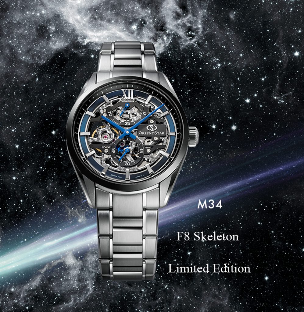 The Orient Star Contemporary Skeleton RE-AZ0104L is another model with a skeleton dial and movement in the Contemorary collection. The model's design is inspired by the starlight illuminating deep space. The grey skeletonised movement and lunette express the vastness of the universe, while the blue circle below the hour indexes symbolises the starlight shining in the darkness.