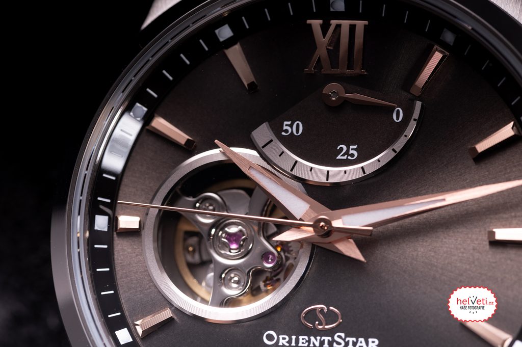 The case of the Orient RE-AT0007N00B is made of stainless steel and inside it we find the Orient F6R4 mechanical movement, which is equipped with an automatic winding and a power reserve of 50 hours. This movement also features a stopping of the second hand when the watch is set ( hacking) and an interesting complication is the winding reserve indicator at the 12 o'clock position. Many will be pleased to see the movement's flywheel at the 9 o'clock position, the so-called "open heart". The movement, operating at a frequency of 21,600 semi-frequencies/hour, can be observed thanks to the transparent dial.