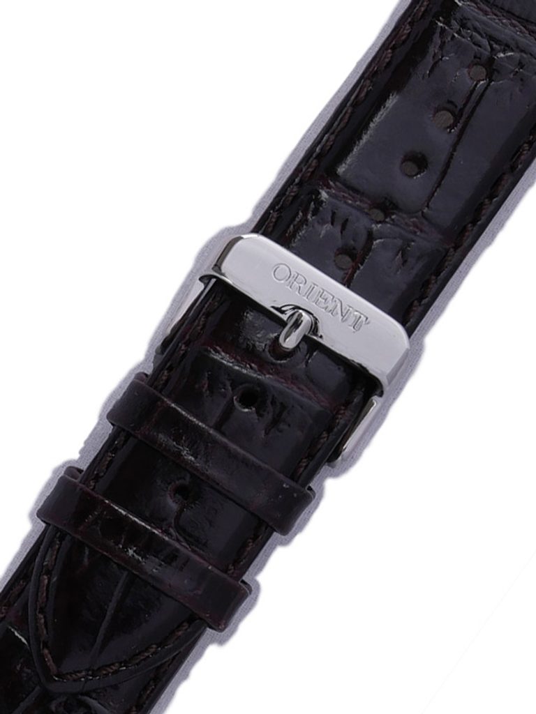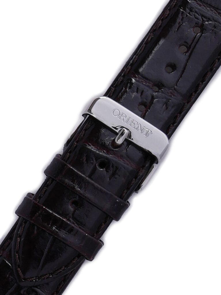 The original brown leather Orient strap with a width of 22 mm boasts a practical steel-coloured buckle and a stylish design. Its high-quality workmanship and unique look also add a touch of elegance to your watch.