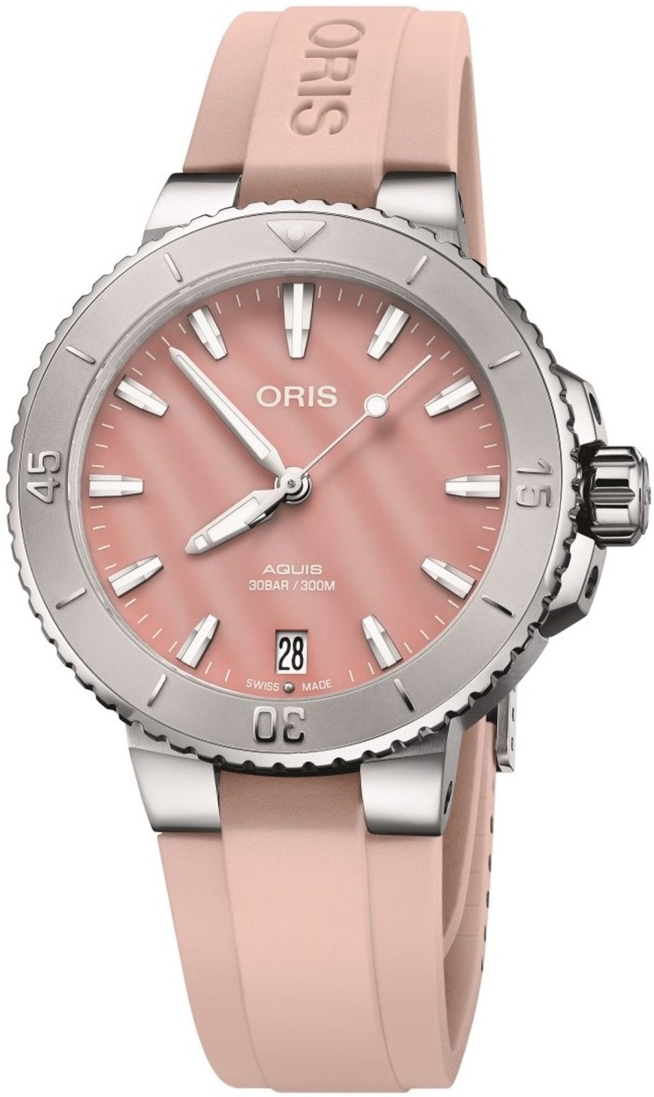 The Swiss Oris Aquis Date 01 733 7770 4158-07 4 18 66FC impresses with its specific, highly attractive "diver" design and excellent workmanship. This model will serve you well not only underwater, but also in everyday wear.