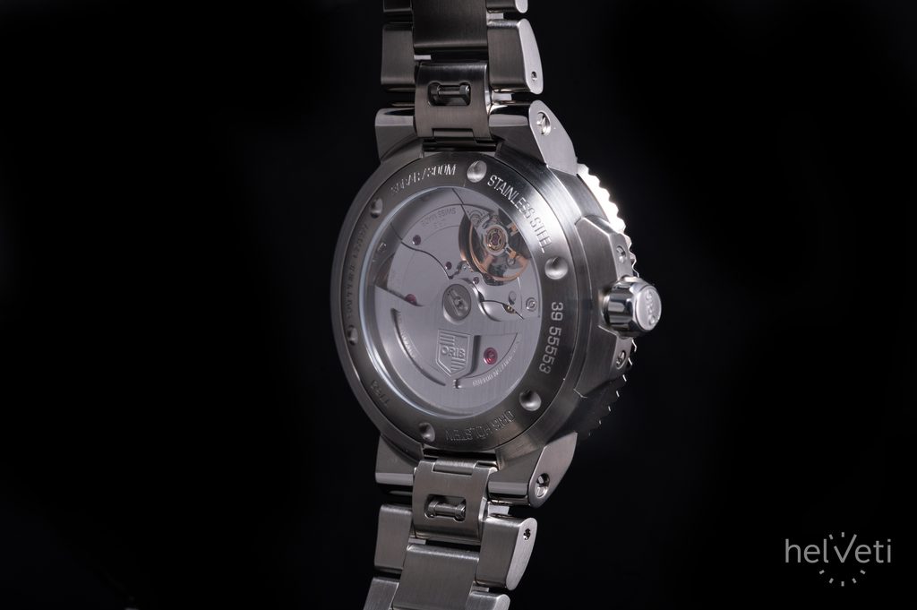 | Functions | Date, Swivel bezel, Screw-on crown, Transparent back case |