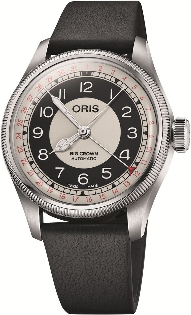 The Swiss Oris Big Crown Pointer Date Bullseye 01 754 7779 4061-07 5 19 25 impresses with its attractive retro pilot style and excellent workmanship. This model serves excellently not only in the clouds, but also in everyday wear.