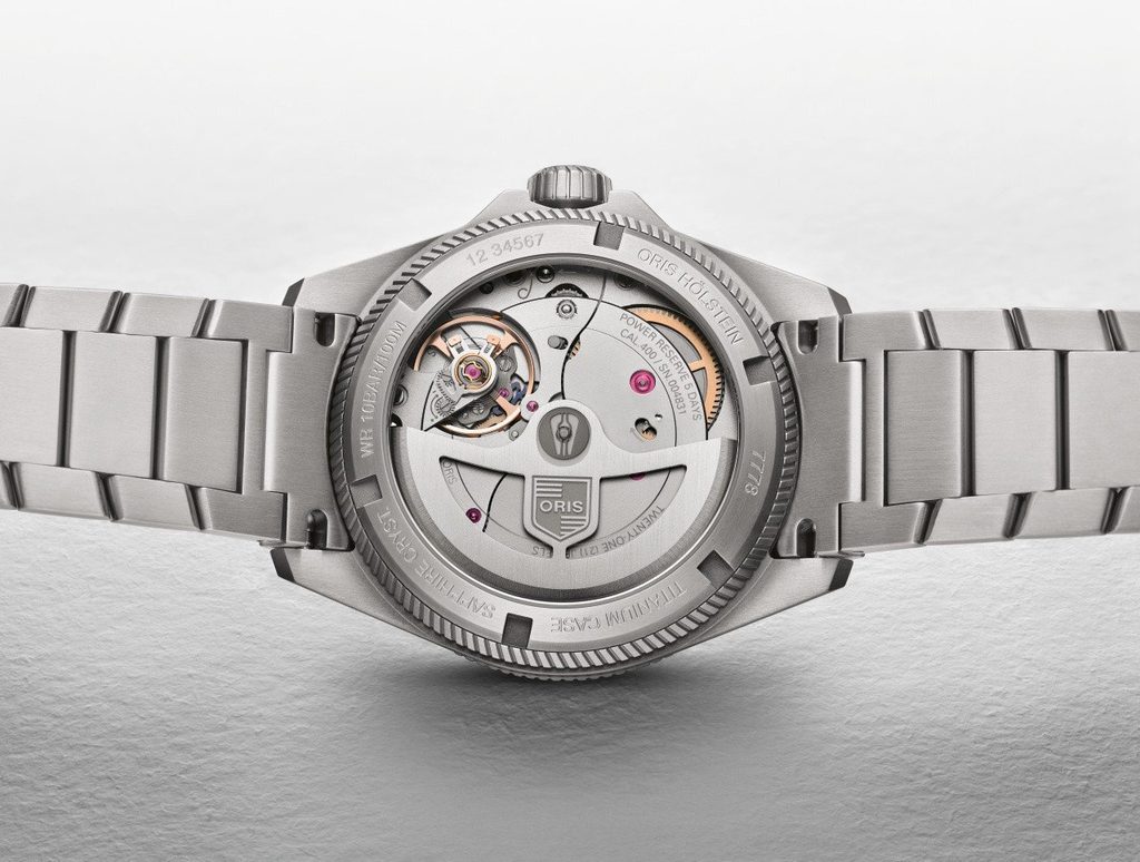 The case of the Oris ProPilot X Calibre 400 0140077787155-0772001TLC is made of titanium, as is its bracelet. Inside its interior, the Oris Calibre 400 Swiss mechanical movement with automatic winding works reliably, which was developed and manufactured by Oris - so it is an in-house manufacture movement. This beautifully ornate movement has 21 stone settings, runs at a frequency of 28,800 semi-frequencies per hour (4 Hz) and can be observed thanks to its transparent sapphire crystal dial. The Oris Calibre 400's greatest strength is its high power reserve of 120 hours, or 5 days. This is achieved thanks to the two feather feathers with extended lips. At the same time, high accuracy is ensured, namely -3/+5 seconds per day, which are better than certified chronometers. This movement also incorporates 30 new antimagnetic parts, resulting in greater resistance to magnetic fields and compliance with ISO 764. This movement also has a recommended maintenance interval of 10 years (the manufacturer also provides a 10-year warranty when registered on "MyOris"), setting a new standard for the maintenance interval of mechanical movements by the Oris brand. It is also worth mentioning the new rotor attachment system of the automatic winding, which ensures a simpler and at the same time more reliable operation.