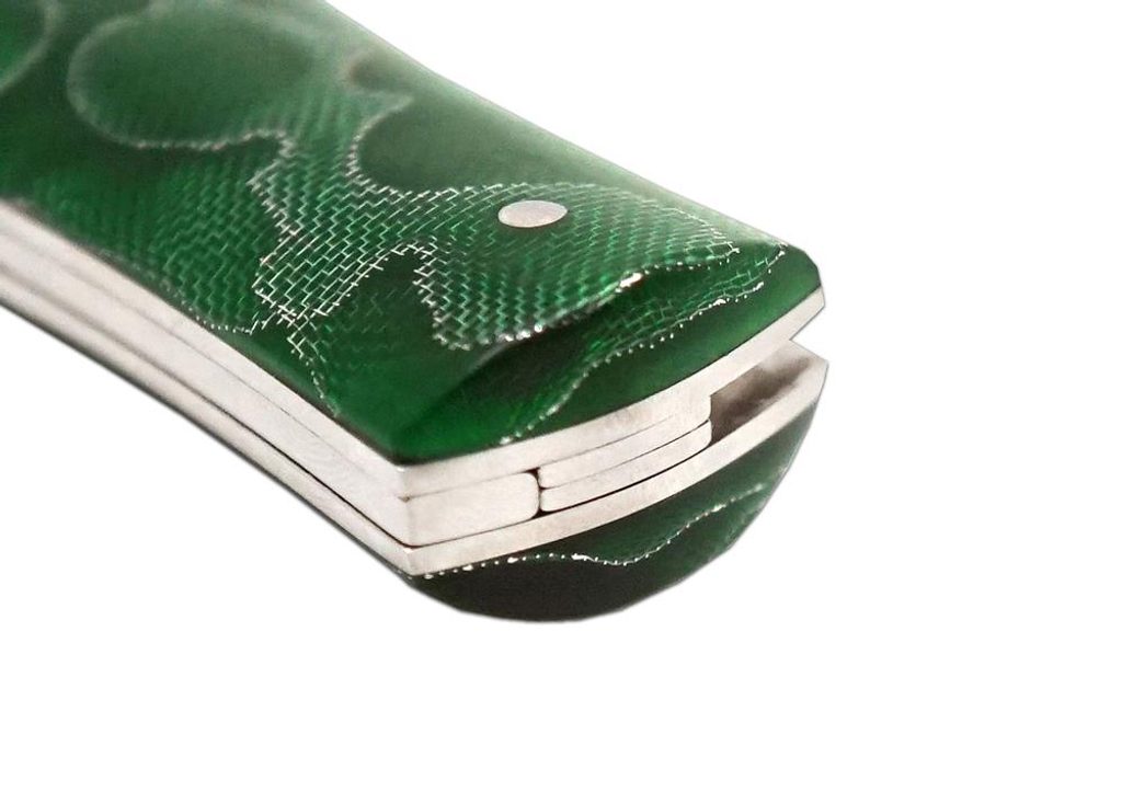 Predator is an automatic throwing knife boasting original design and luxurious materials. The blade of the knife is made of high-quality Bőhler N690 steel with a hardness of 57-60 HRc, which is characterized by high hardness and cutting ability. The attention is also drawn to the knife's blade, which is made of a material called RAFFIR. This is a new material that is durable and pleasant to the hand. Its ergonomic shape in conjunction with the other parts makes the beautiful and sophisticated shape of the knife stand out with the complementary name PREDATOR RAFFIR. The luxurious design of the knife goes hand in hand with its toughness and high durability.