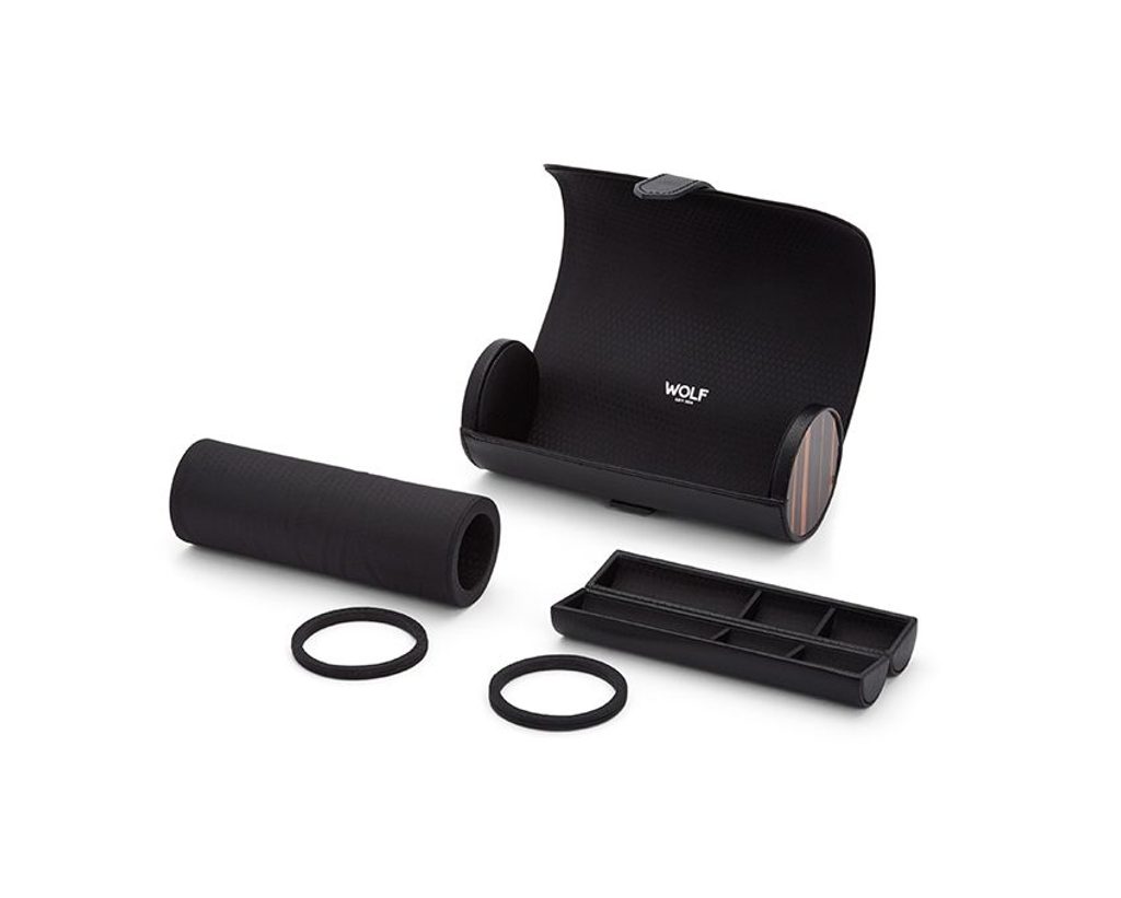Inspired by the best British cars, Jaguar, Aston Martin, Bristol and so on. The Wolf Roadster 477856 travel case is handcrafted from finely textured vegan leather, diamond satin lining and patented watch protectors to keep your watch protected while you travel.