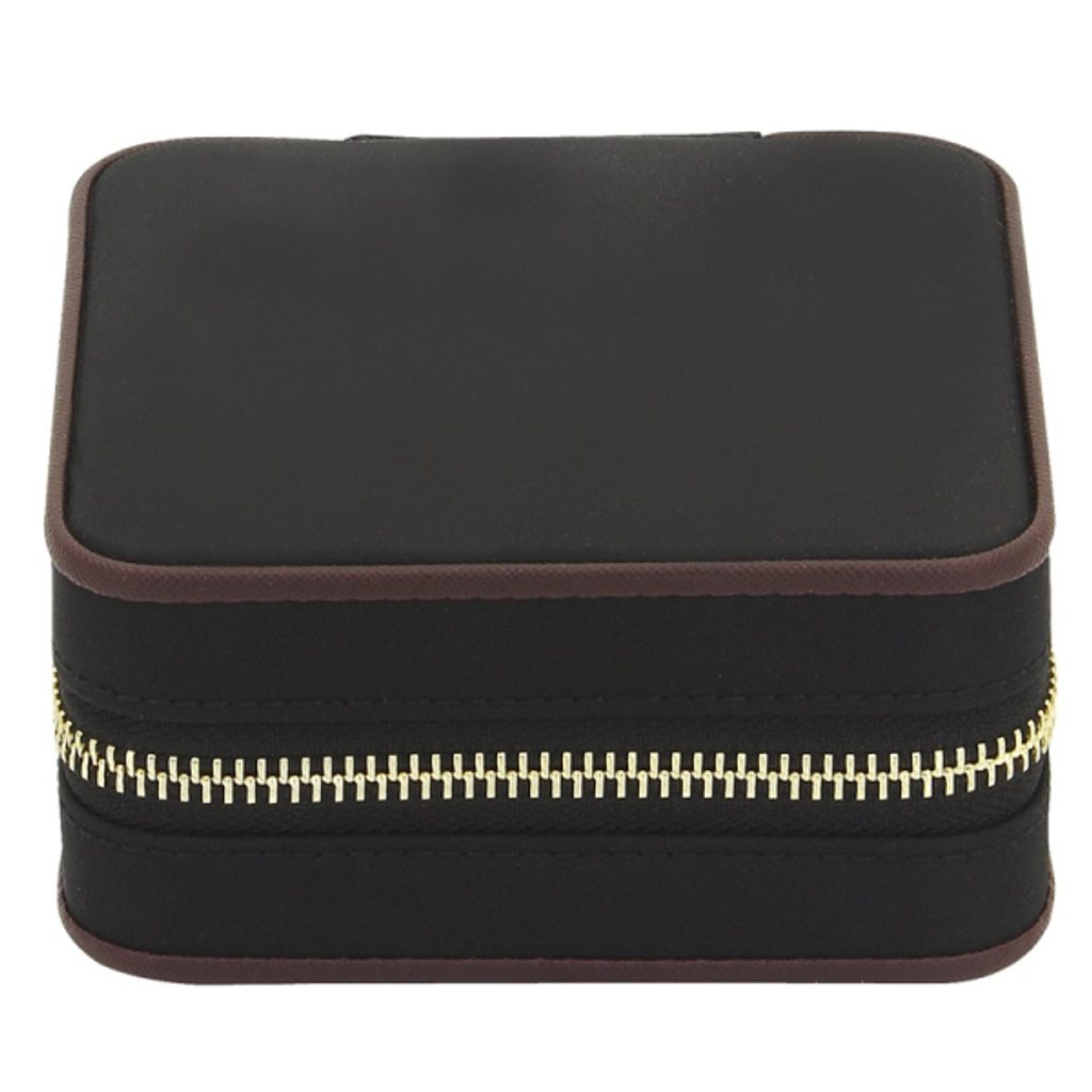 Friedrich Lederwaren Copenhagen 23335-2 black travel jewellery box is made of polyester, the interior is made of brown microfiber.