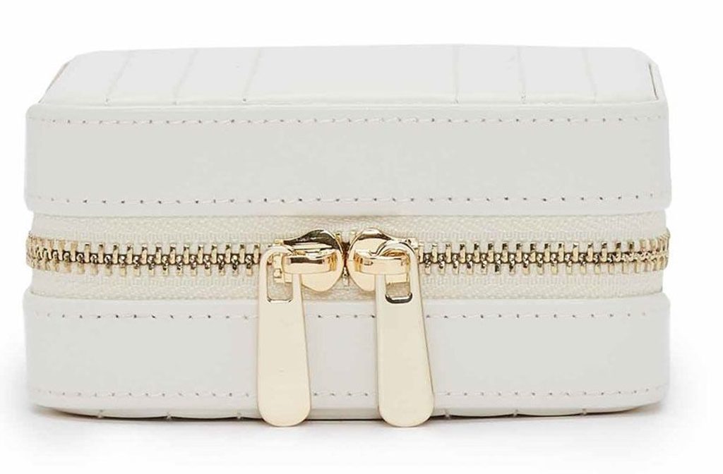 Travel jewelry box Wolf Maria Small 766253 white blue with beige interior. Made of smooth leather accented with gold color details. The perfect travel jewelry box that will fit in any travel bag or even purse.