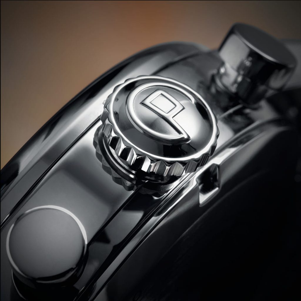 The red chronograph hands underline the emphasis on time as a key element of sporting performance and also accentuate the dynamic character of the entire model. Their contrasting design not only enhances the sporty aesthetic, but above all ensures fast and intuitive readability of the measured values. The red detail is thus not just a design element, but a functional and symbolic accent that combines technical precision with the energy of the sporting world.