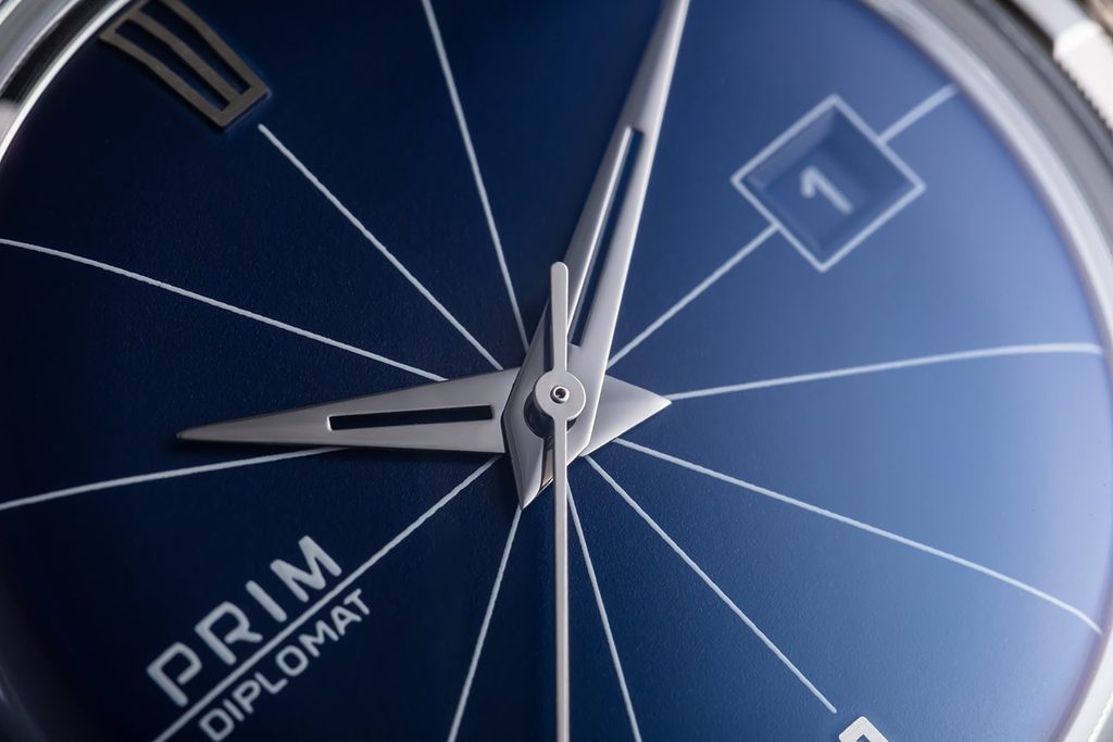 The classic PRIM DIPLOMAT 40 C 98-202-395-00-1 social watch follows the original model produced in Nové Město nad Metují at the end of the 1960s. Today, the watch has an enlarged case according to current trends and modern materials are used for production. The working name of the watch was PRIM Repre when it was created. From the very beginning it was perceived as a premium model in the wide range of PRIM watches.