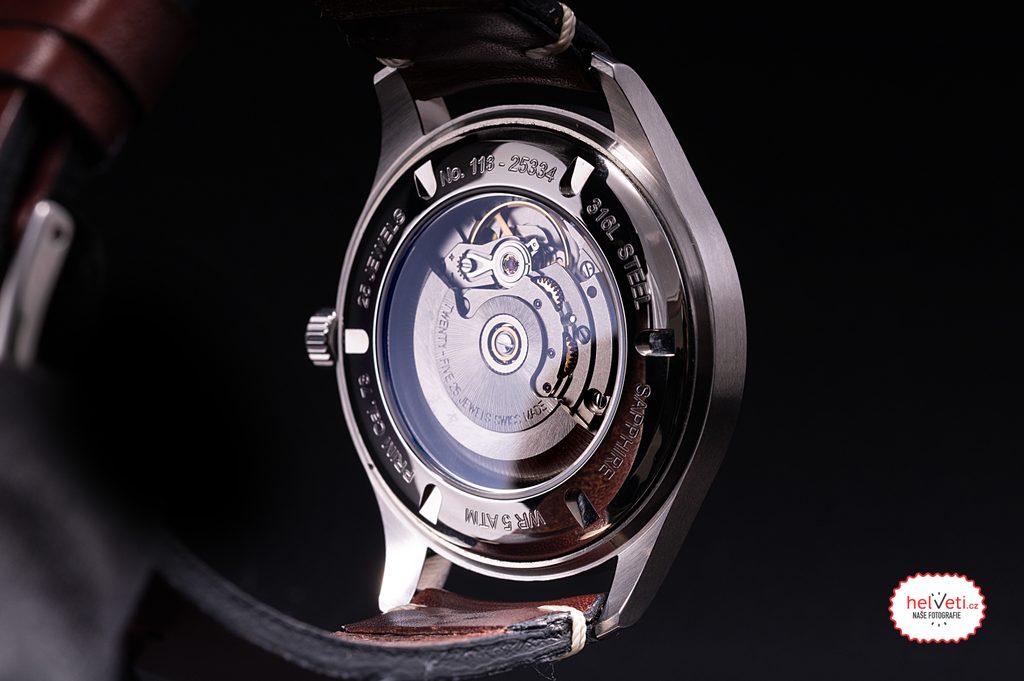 Thewatch belongs to the PRIM Automatic series and is equipped with a high-quality Swiss movement ETA 2824-2 with automatic winding. The other components of the watch, such as the case, crown, hands or dial, were manufactured in the New Town manufactory. The models of this seriesbear the designation PRIM AUTOMATIC. This designation is based on the history of ELTON - the classic PRIM logo, created in 1969 by the designer Josef Žid, is complemented by the inscription AUTOMATIC in the form used since 1978 on watches with a modified automatic calibre. PRIM Kupka 40 A watches are produced with a polished stainless steel case, sapphire crystal and cowhide strap. The glass caseback offers a view of the mechanical movement.