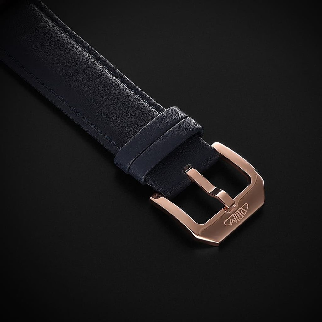 The dominant feature is the domed sapphire crystal with a double anti-reflective coating, which highlights the retro dial with its raised indices and fine articulation. Thanks to the transparent dial, the detailed work of the mechanical movement can be observed.