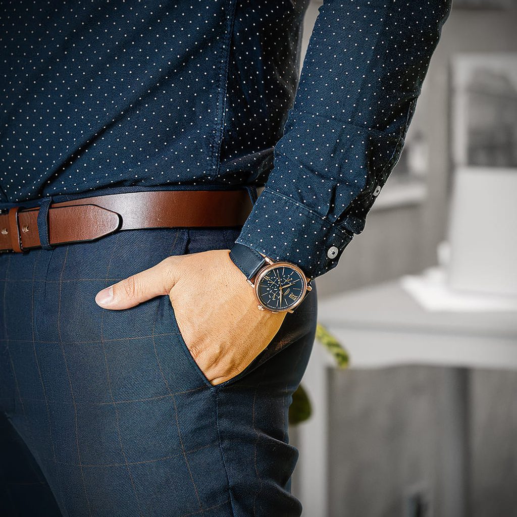 The model is available in several colour options - from classic white and black, to elegant blue, to a luxurious version with gold or rose gold details. Each version is complemented by a leather strap that underlines the timeless elegance.