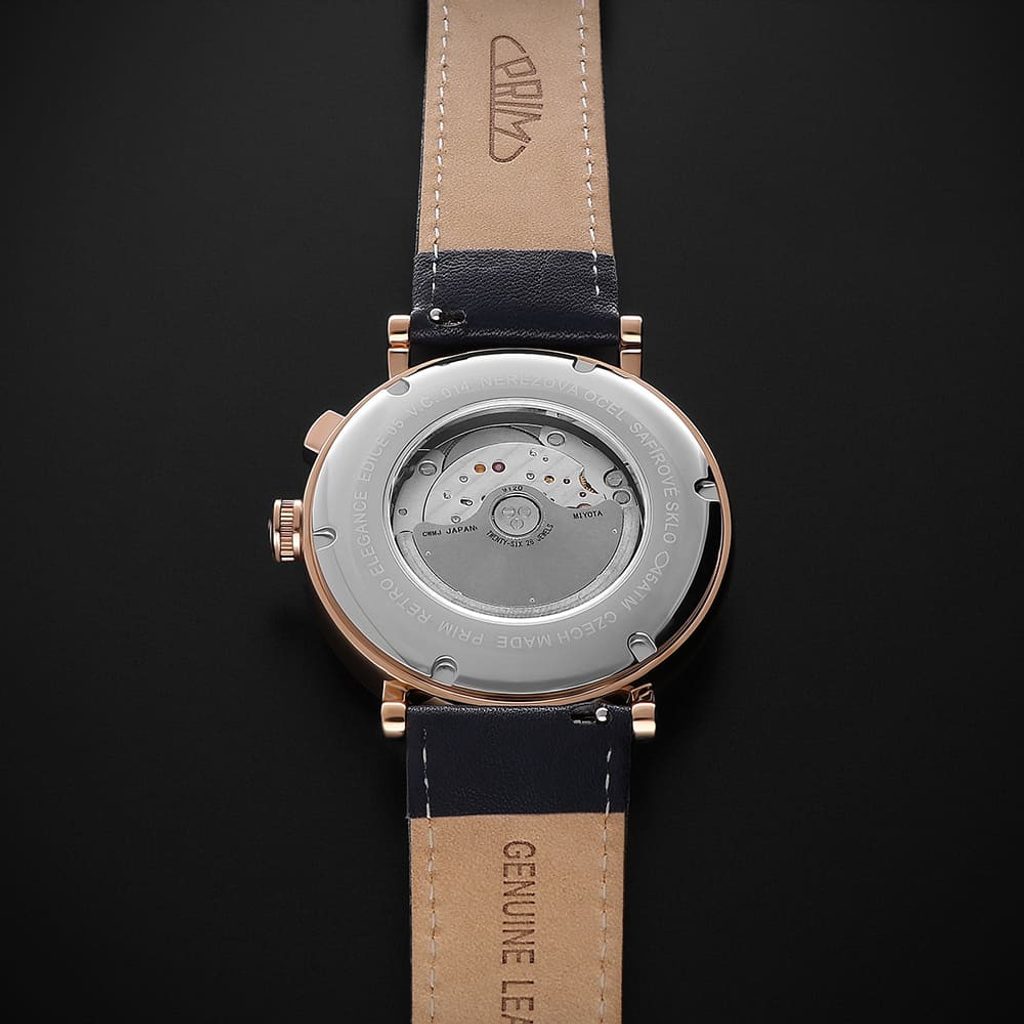 PRIM Retro Elegance 25 - elegant men's watch with Miyota 9120 calibre, sapphire crystal, transparent dial and leather strap in various colours. A classic in a modern concept. A new collection of men's watches that combines pure design with precision craftsmanship.