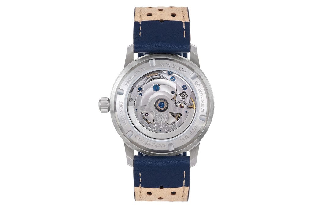 Model PRIM SPORT 38 95-016-501-00-1. Thanks to its smaller diameter and imaginative colour combinations, the PRIM SPORT 38 is a unisex watch that also allows it to be worn with a more elegant style of clothing. It is a truly universal model for all generations. In addition to the watch with a leather strap, made for this model by the Tlustý Bagsmithy, the wooden box also contains a rubber strap. Thanks to the water resistance of 10 ATM, which is ensured by the screw-down crown, you can use the watch without any worries even when in the water.